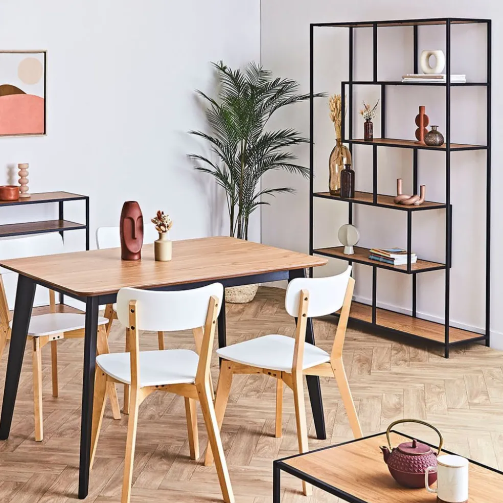 sur un cadre en métal noir poudré brut qui crée un contraste rafraîchissant.