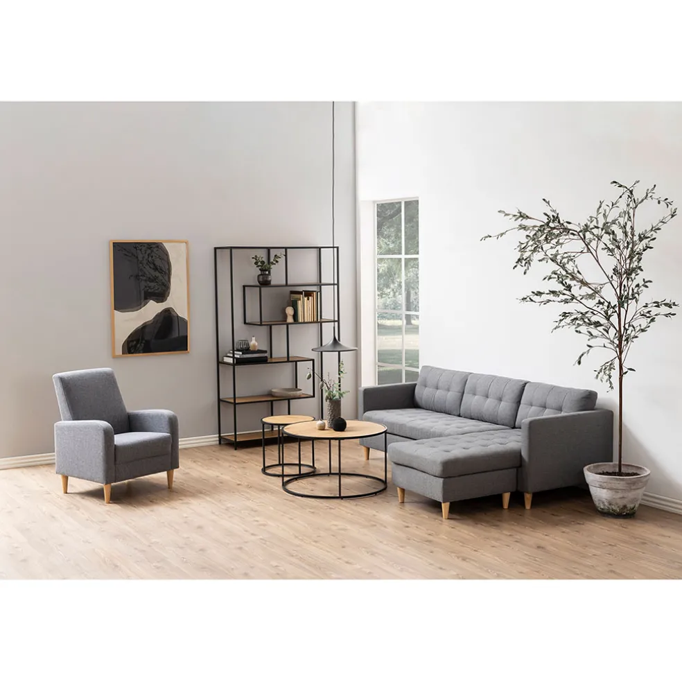C’est un élément de design moderne qui ajoute naturellement de la profondeur à n’importe quel intérieur.En métal thermolaqué noir mat, 5 étagères en papier chêne sauvage mat.