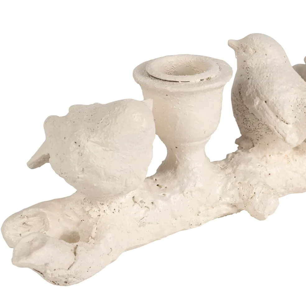 Fabriqué en résine écru, ce support à bougies illustre un moineau délicat, apportant une touche de nature et de chaleur à votre intérieur.