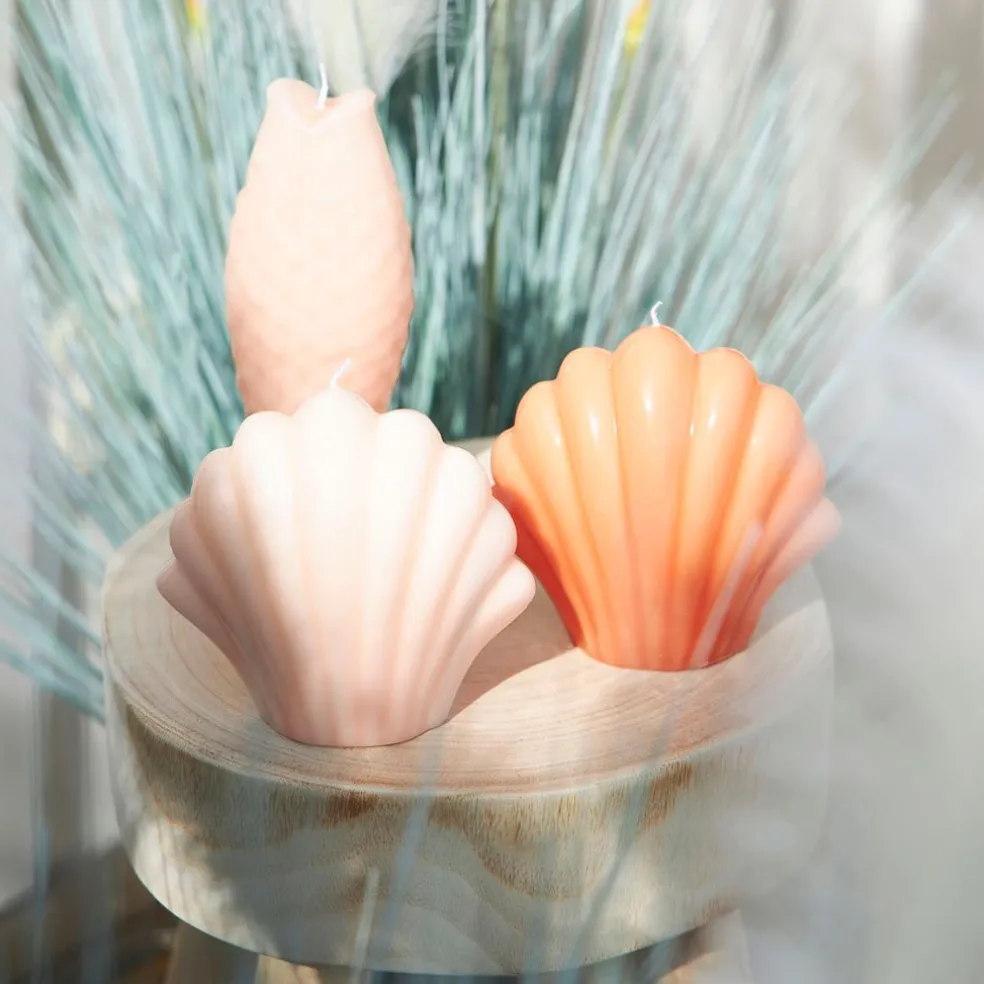 Découvrez la bougie Saint-Jacques corail 12.5×6.5cm – Bord De Mer, un véritable trésor pour votre ambiance décorative !