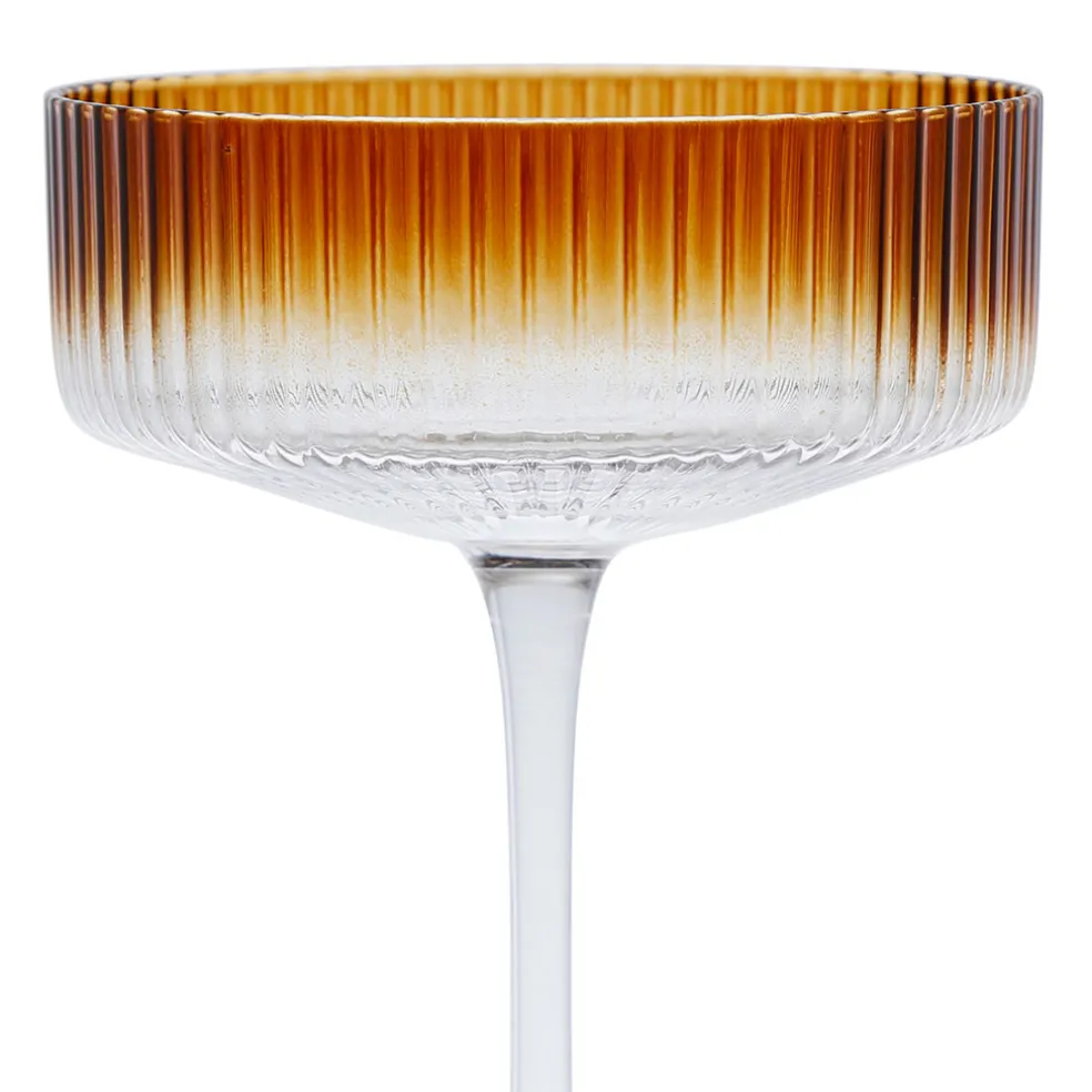 Découvrez notre verre à pied unique en son genre : la coupe de champagne striée en verre ambre.