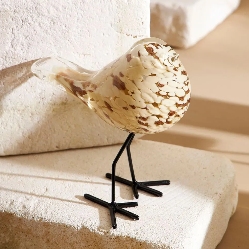 Ajoutez une touche de charme et de créativité à votre intérieur avec cette superbe décoration moineau en verre et fer beige et doré – Serin.