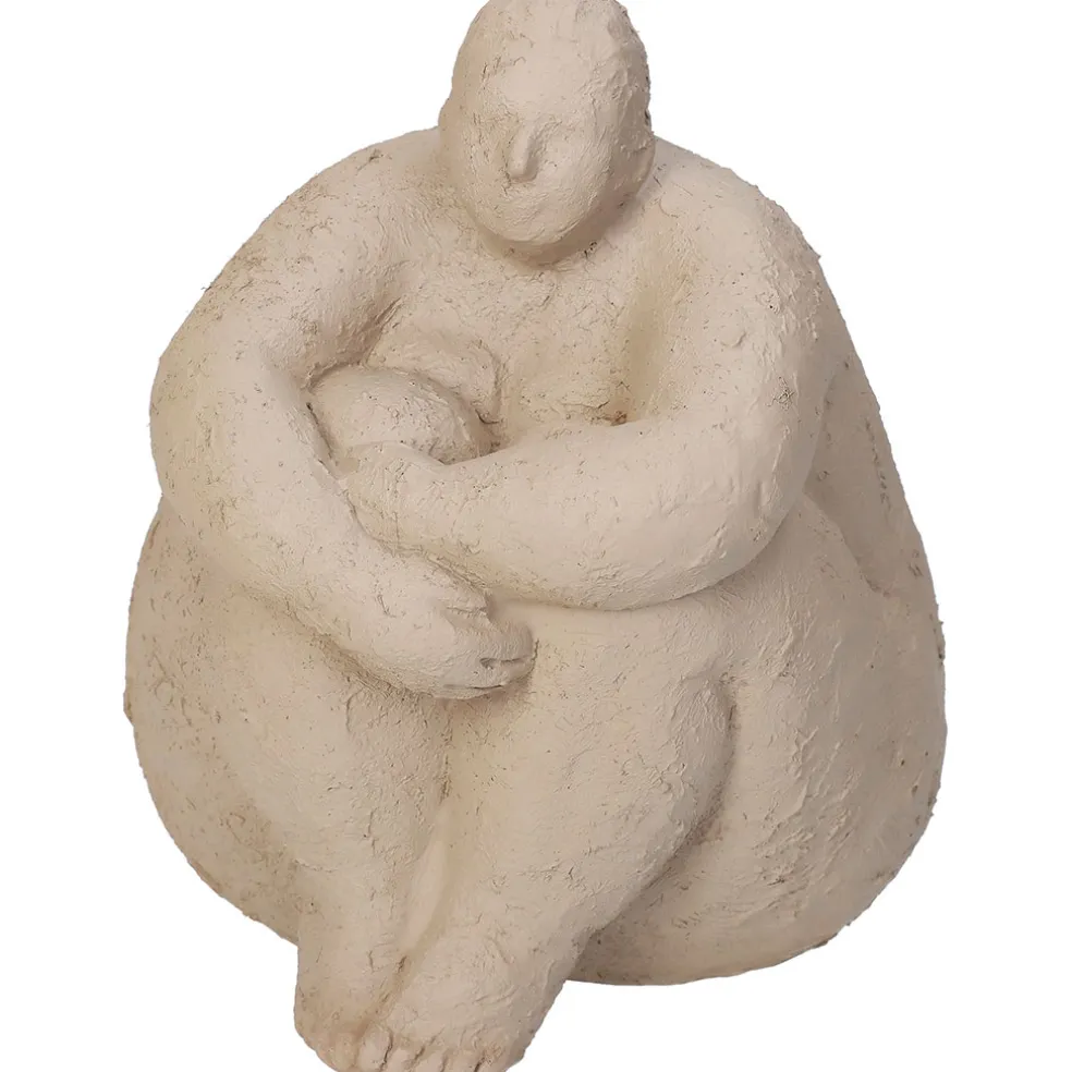 Ornement moderne d’une grande femme en beige, conçu pour ajouter une touche artistique à votre espace. Fabriqué en polyrésine, idéal pour un style contemporain.Ciment