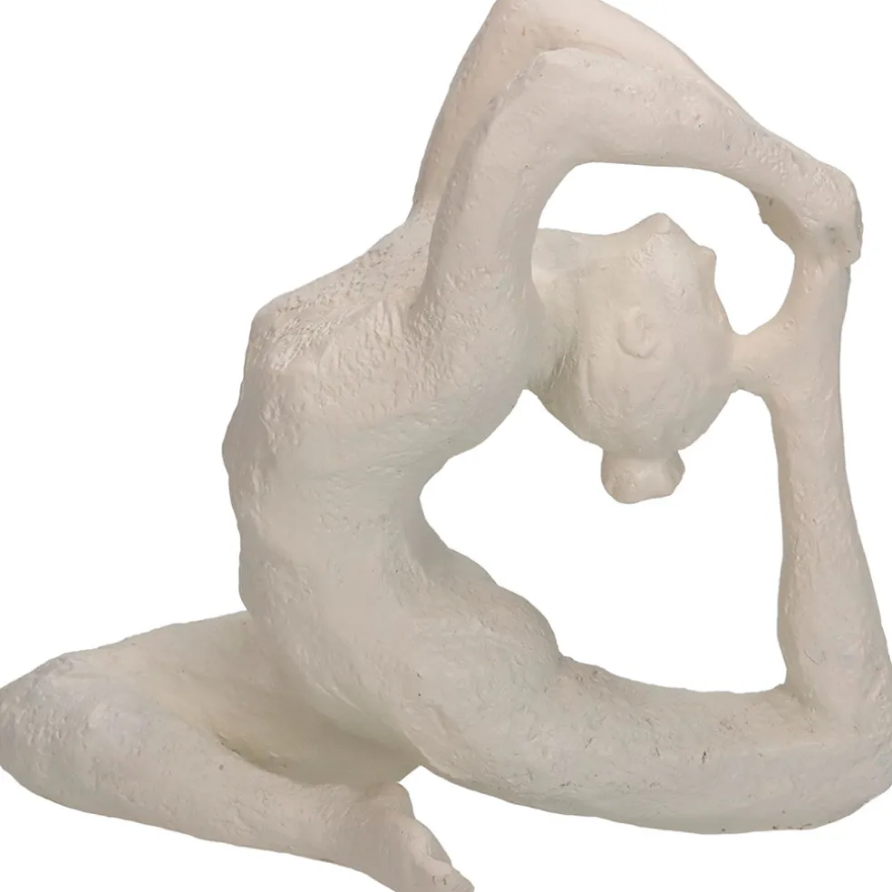Déco en polyrésine de couleur ivoire représentant une femme dans une élégante pose de yoga. Une pièce de décoration apaisante qui s’intègre parfaitement dans un style champêtre.Grès