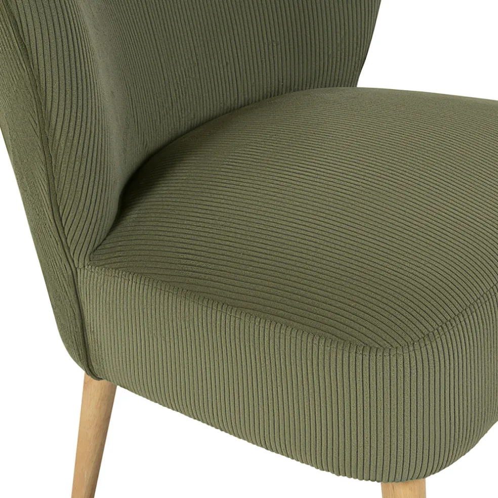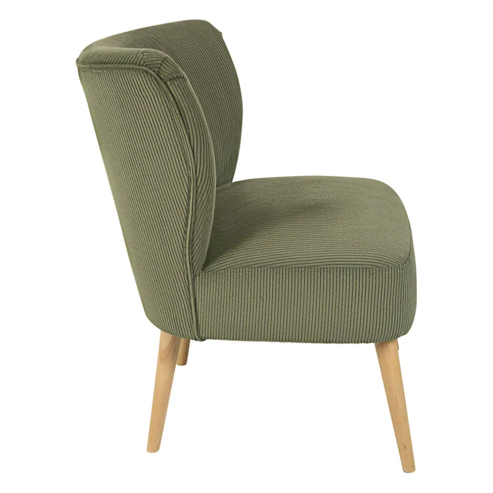 Ajoutez une touche de style et de confort à votre intérieur avec le fauteuil en velours côtelé kaki Eleonor.POLYESTER+CONTREPLAQUÉ+HEVEA
