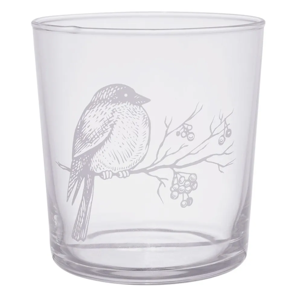 Apportez une touche nature et élégante à votre table avec le gobelet en verre Bodega, orné d’un motif raffiné d’oiseau blanc.