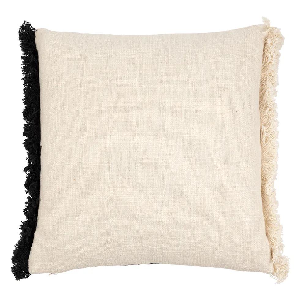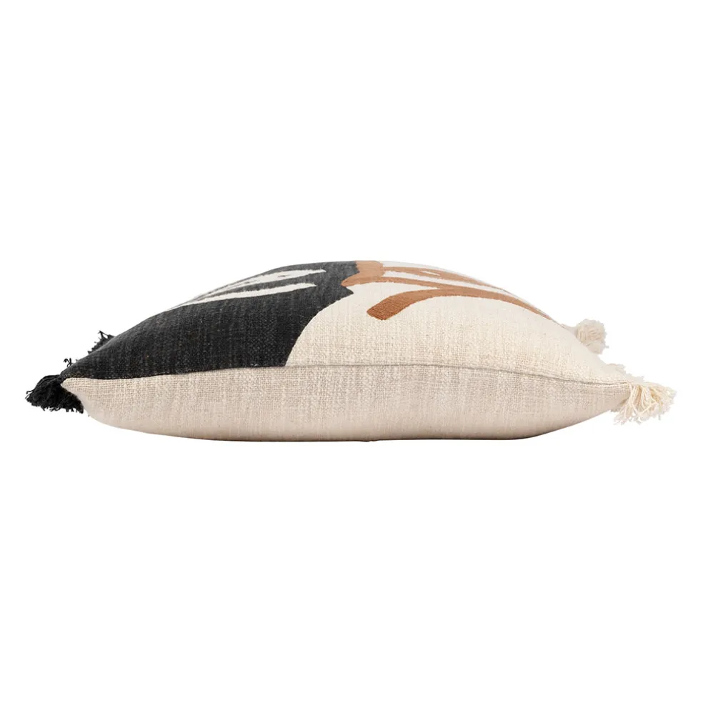 Coussin brodé écru et noir de dimensions 45x45cm avec housse en madeira. Parfait pour ajouter une touche élégante à votre intérieur.Coton / Cotton