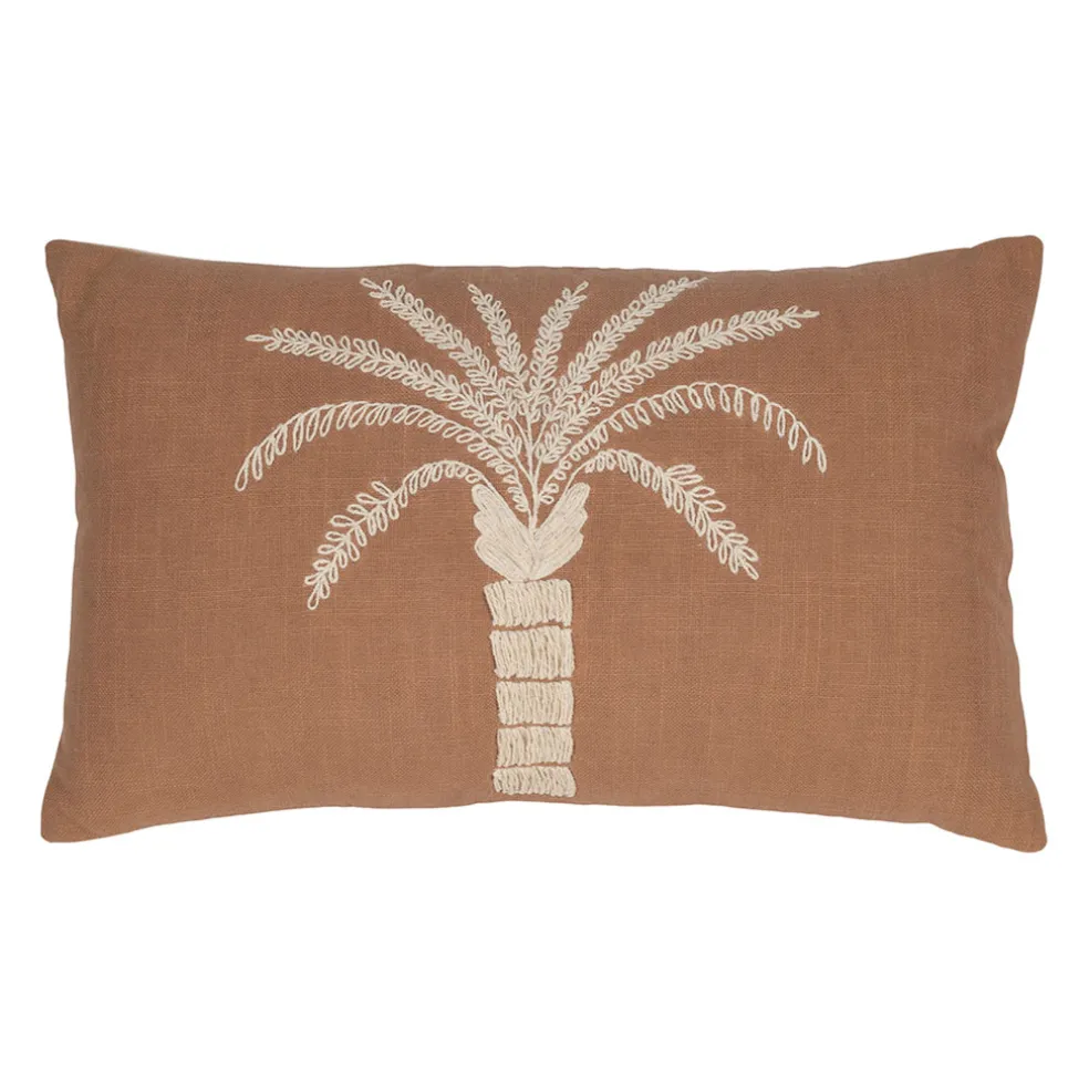 Apportez une touche exotique et chaleureuse à votre intérieur avec cette housse de coussin brodée « Nomadea » en coton terracotta.