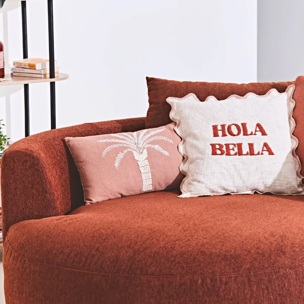 La teinte terracotta apporte une chaleur subtile, tandis que la broderie écrue ajoute du relief et de l’élégance.