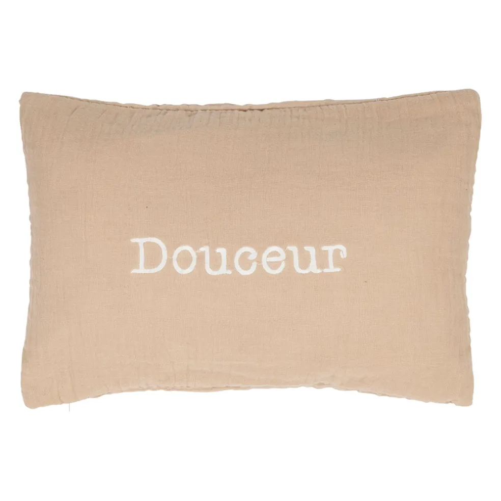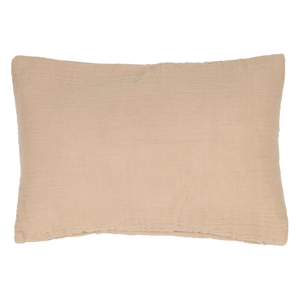 La gaze de coton est appréciée pour sa texture légère et aérienne, conférant à ce coussin une qualité respirante qui en fait l’allié idéal pour toutes les saisons.