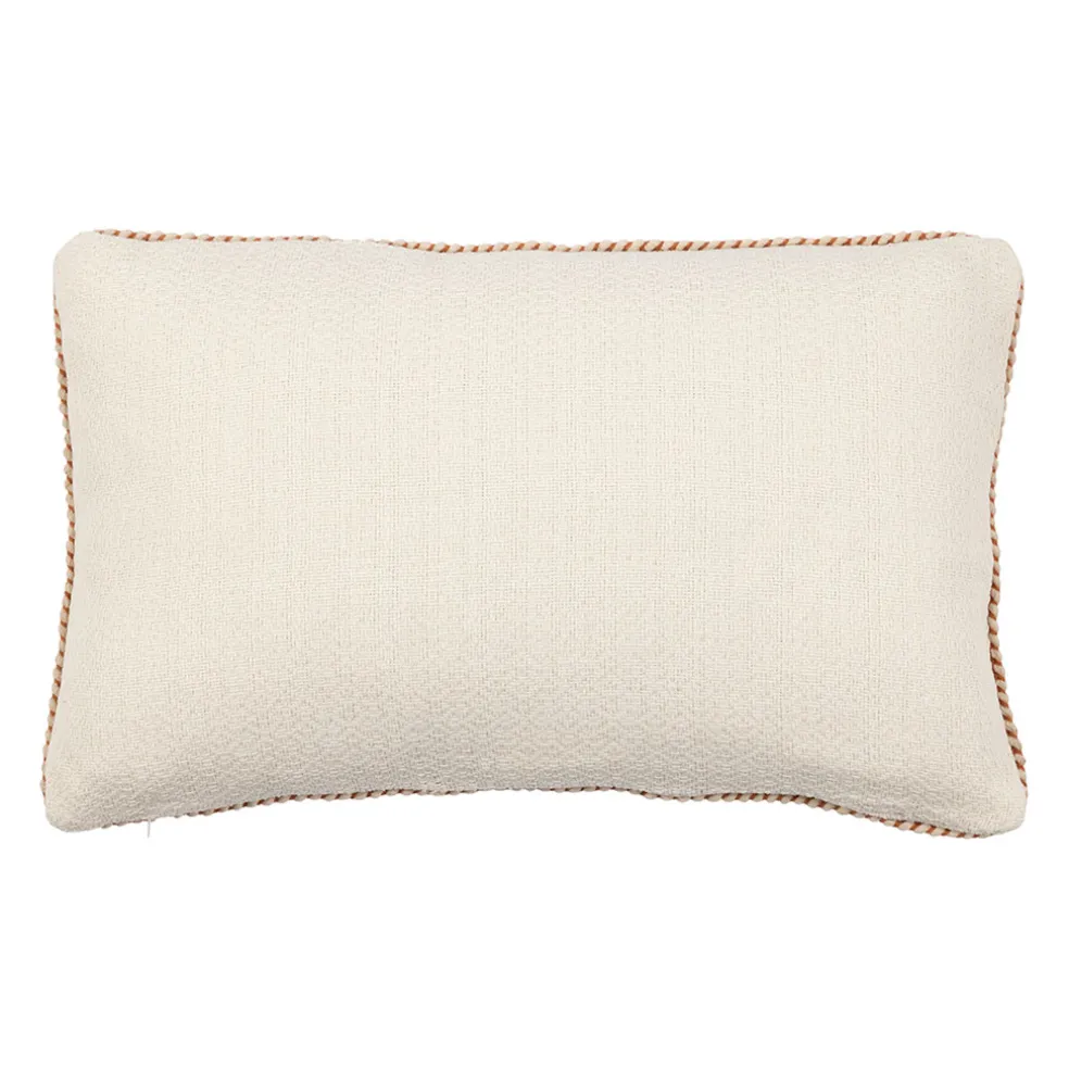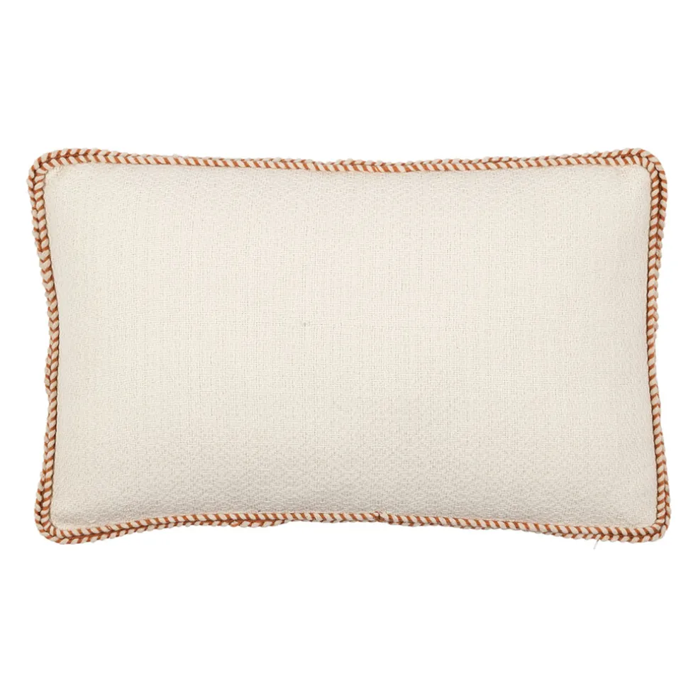 Le contour subtilement tressé en terracotta apporte une note chaleureuse et originale, idéale pour rehausser la sobriété de l’écru.
