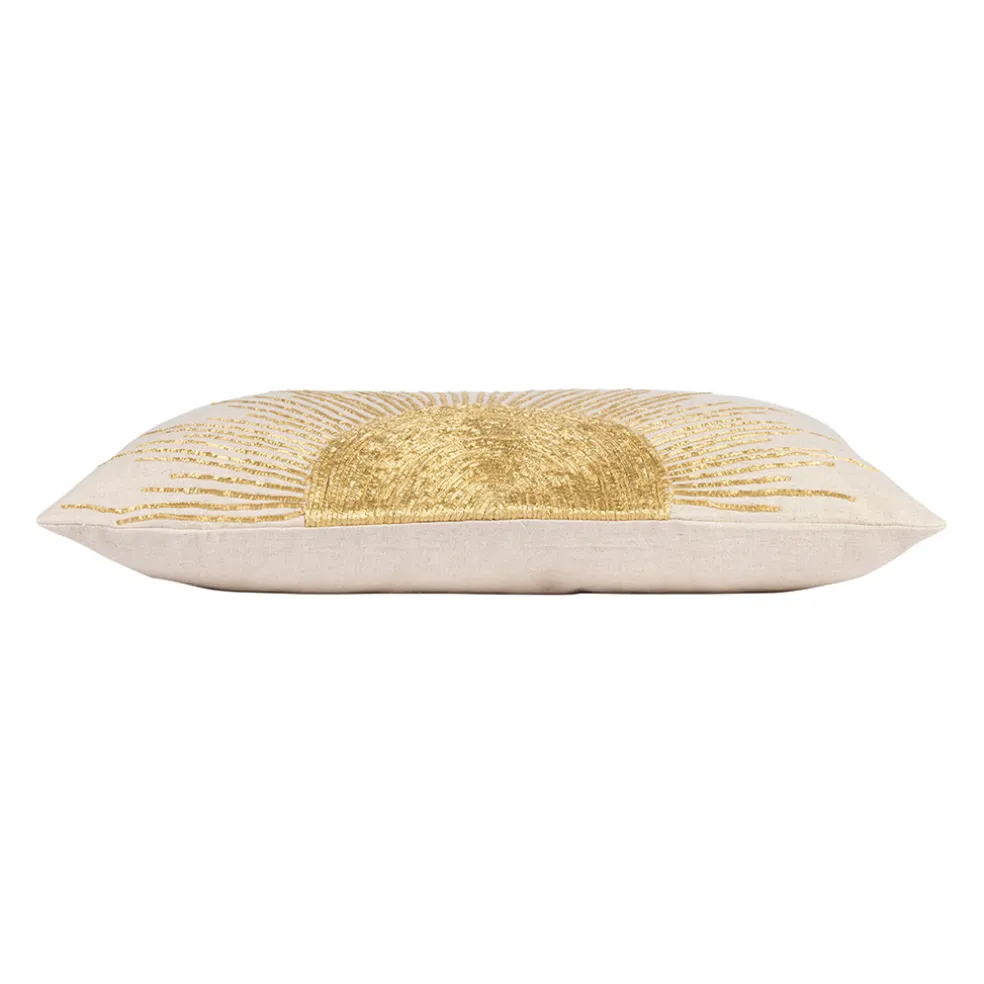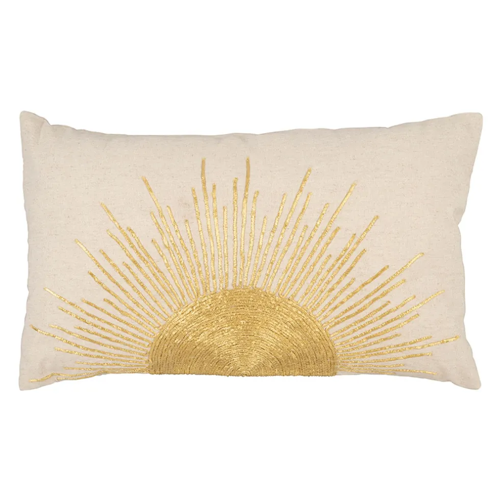 Découvrez notre magnifique coussin en coton et lin blanc de 50x30cm, orné d’un motif ensoleillé.