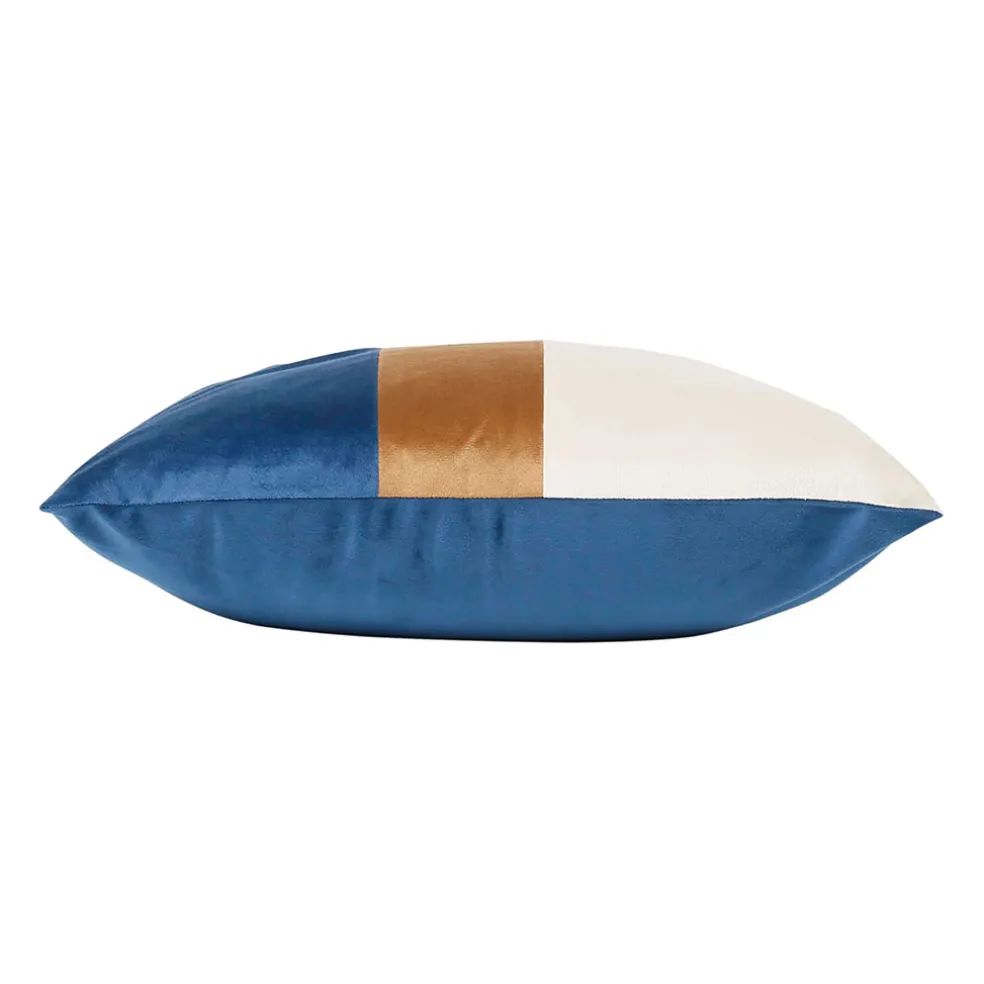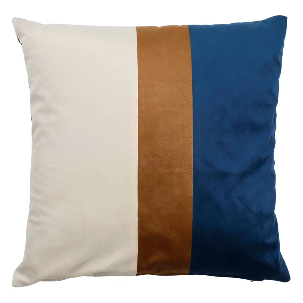 Ajoutez une touche de confort et de style à votre intérieur avec cette magnifique housse de coussin en velours bleu et camel de 45×45 cm.