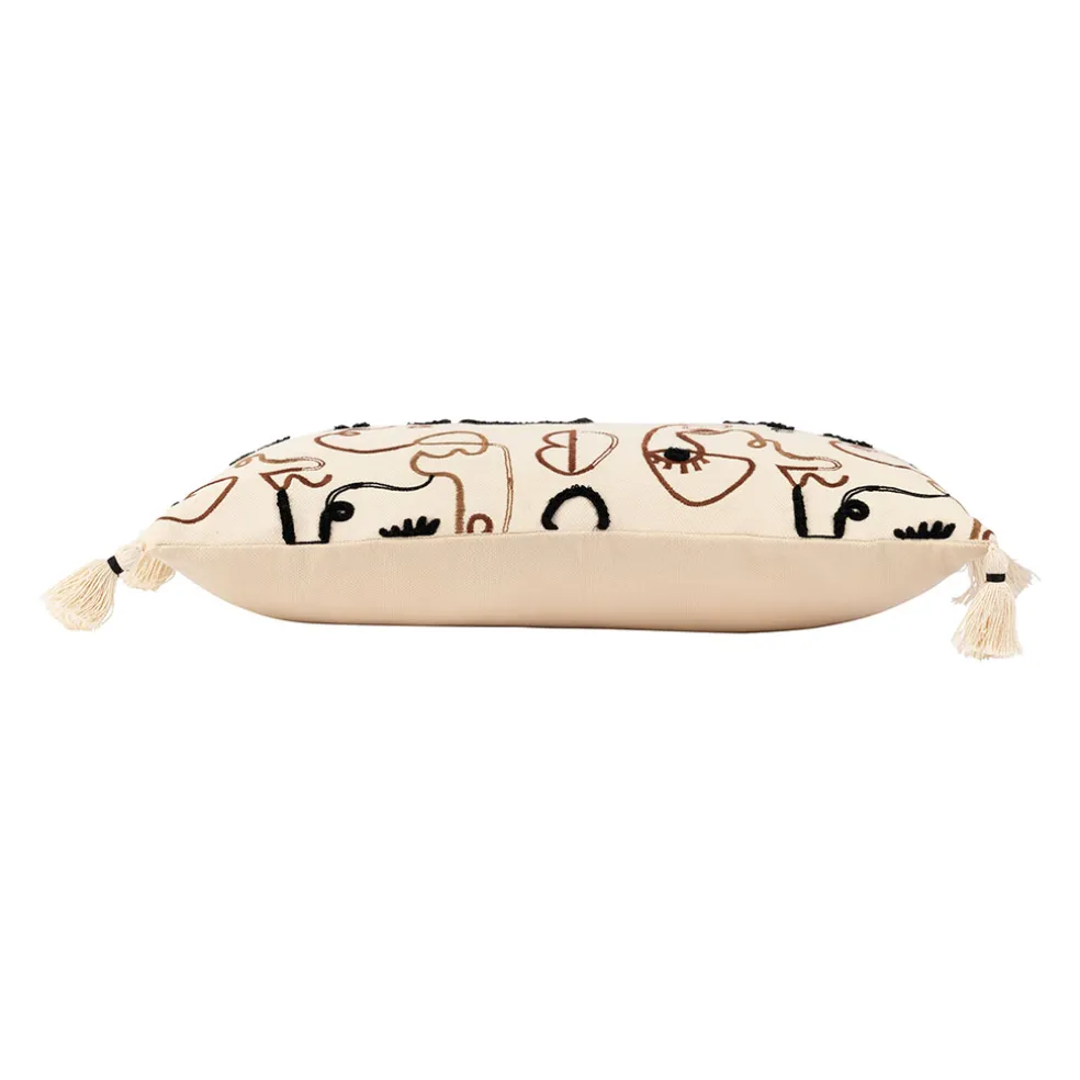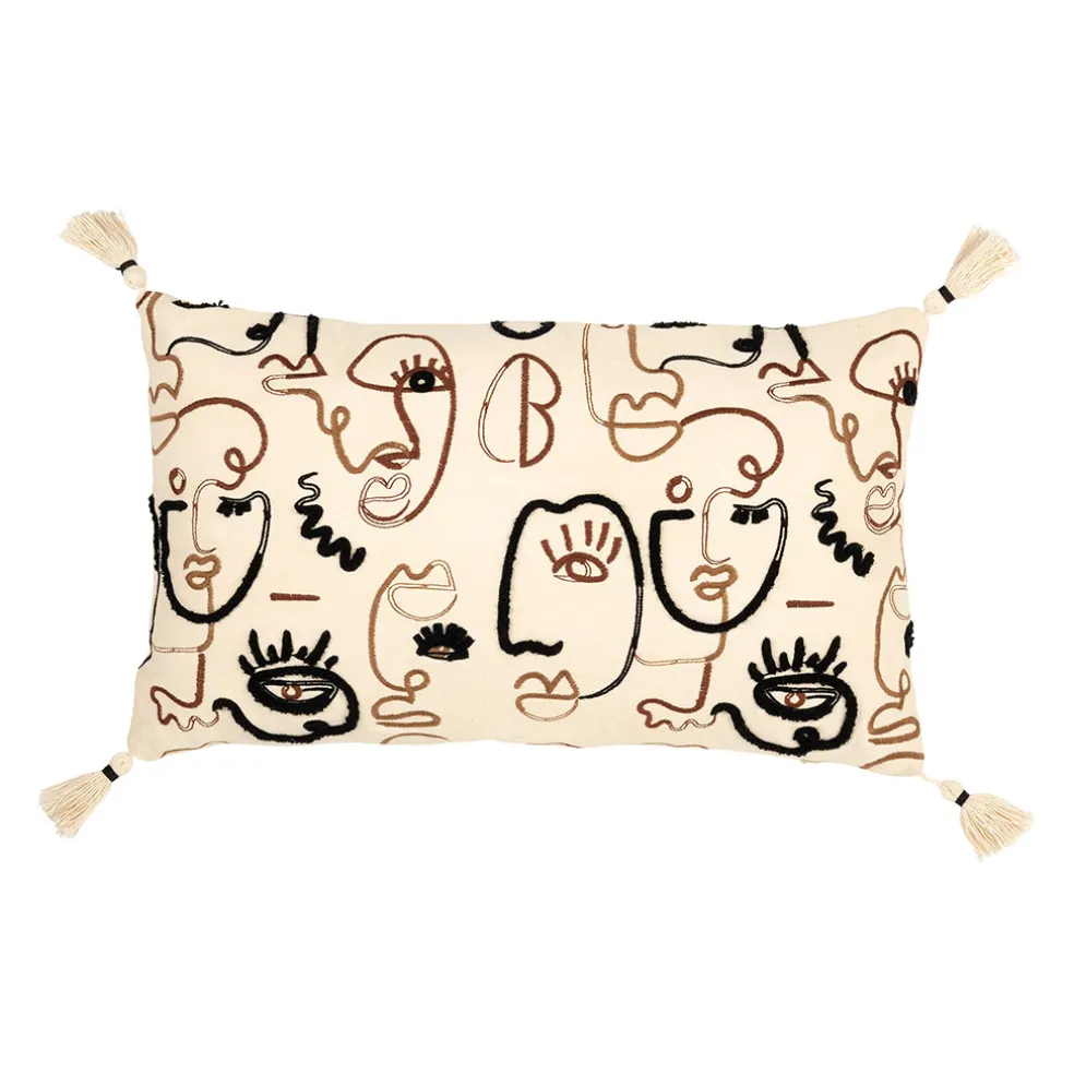 Découvrez notre coussin rectangulaire en terre brulée, avec une housse écru, brun et noir brodée d’un visage. Mesurant 50x30cm, il apportera une touche élégante et chaleureuse à votre intérieur.Coton / Cotton