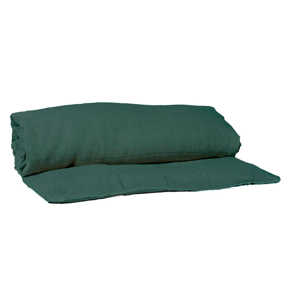 Le lin, réputé pour sa résistance et sa capacité à réguler la température, s’associe merveilleusement au coton pour créer une enveloppe de couchage qui respire.