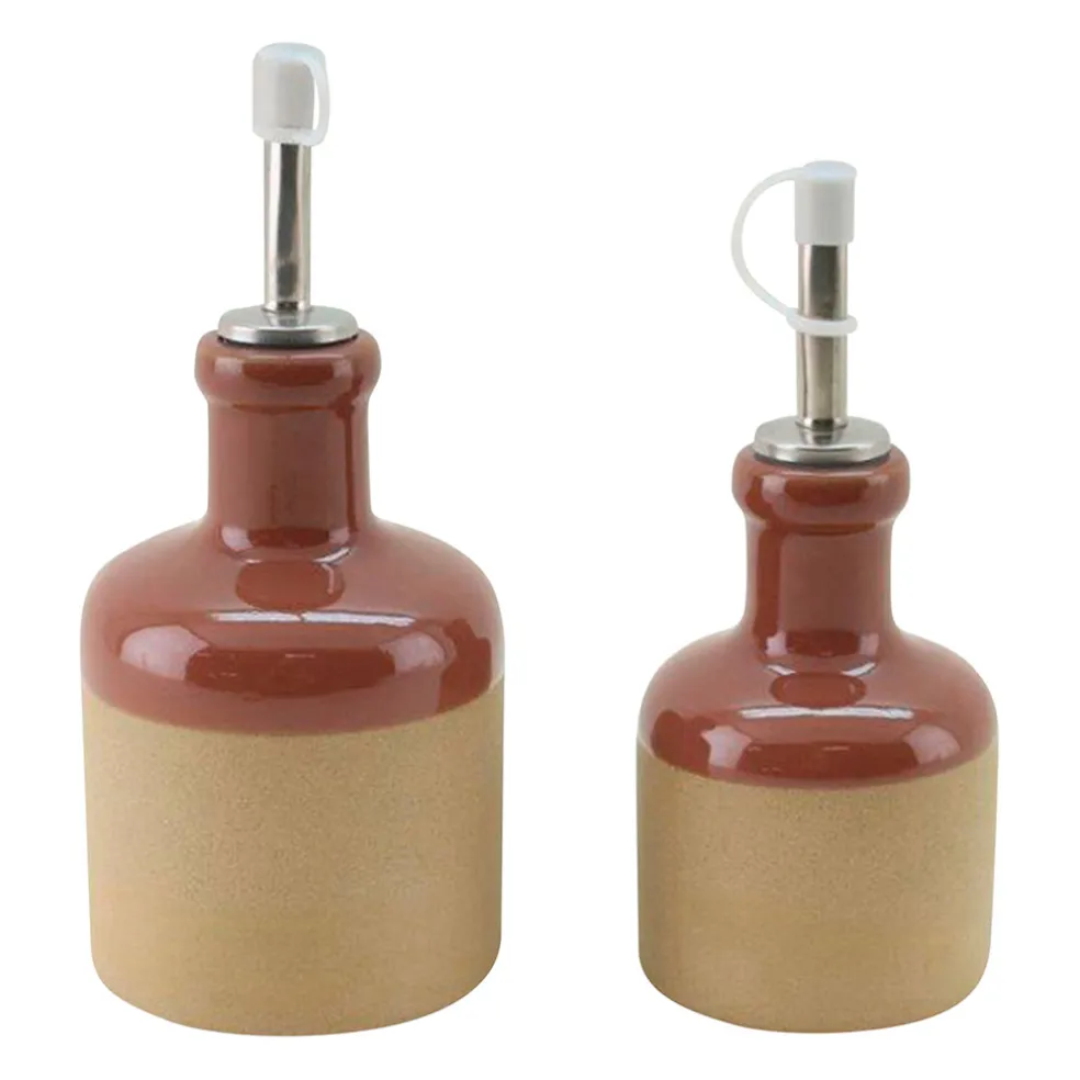 Découvrez le duo parfait pour agrémenter votre cuisine : notre huilier et vinaigrier en grès tomette.