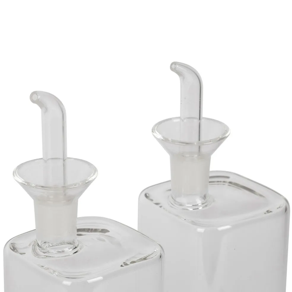 Les bouteilles pour l’huile et le vinaigre sont en verre borosilicate blanc de 45 cl.