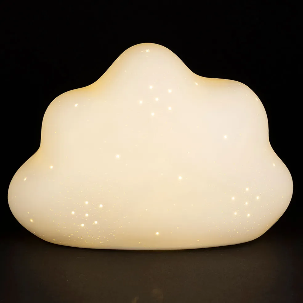 La lampe nuage en porcelaine blanche, mesurant 17 cm de hauteur et dotée d’un éclairage LED, crée une atmosphère enchantée tant pour les plus petits que pour les grands.