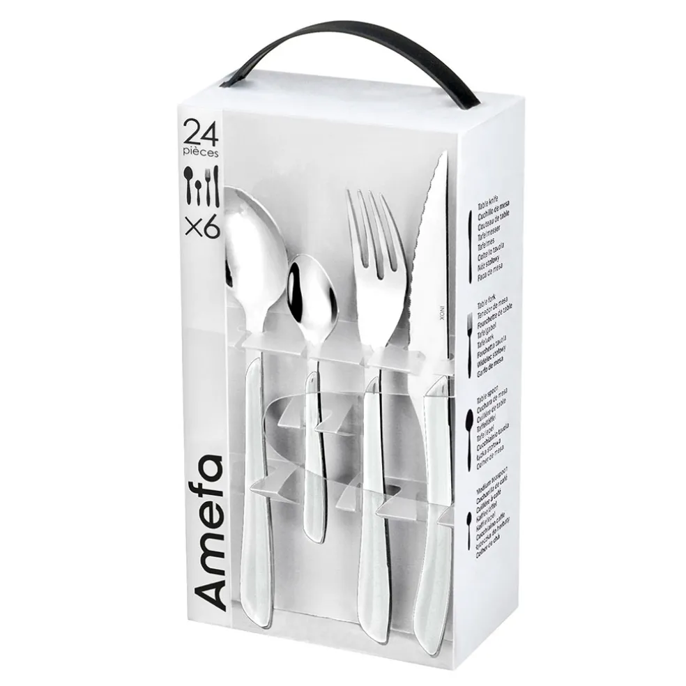 Ménagère en acier blanc de 24 pièces, apportant une touche d’éclat à votre table.ACIER 18/0