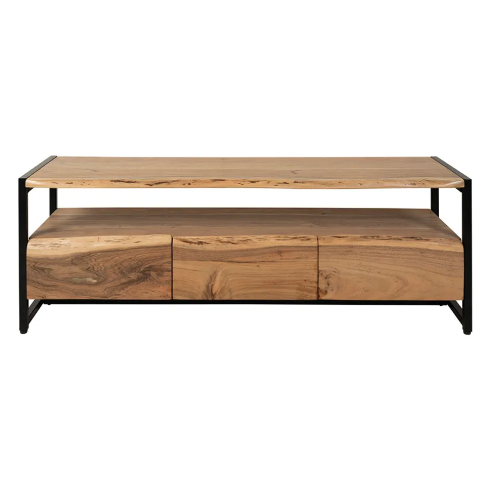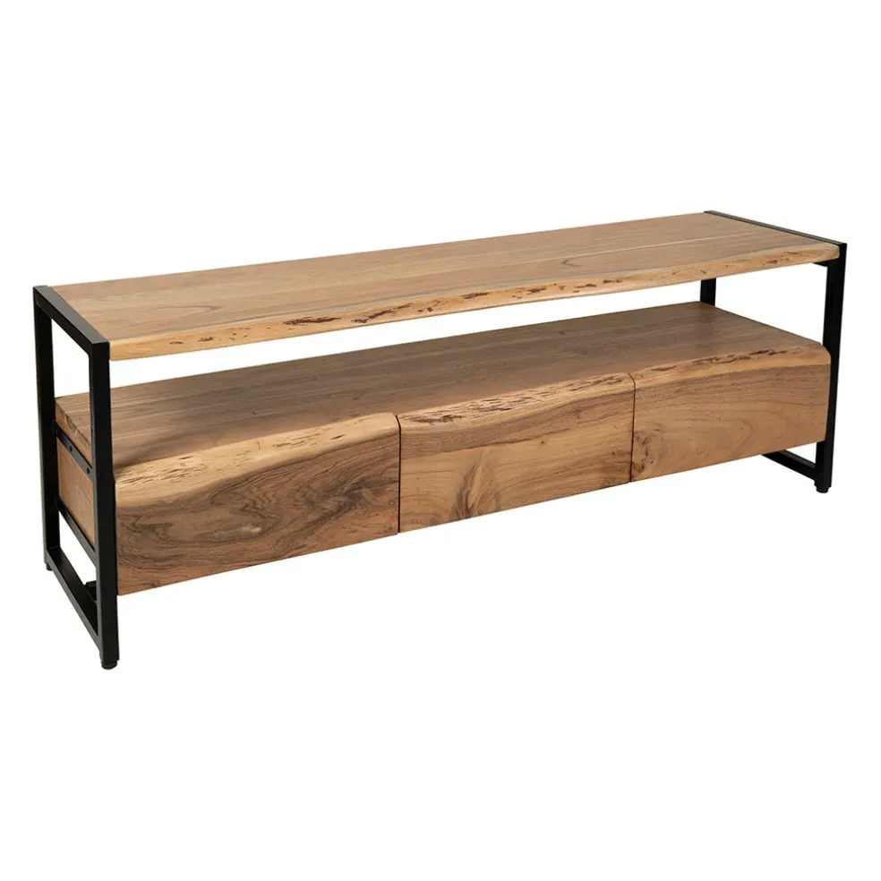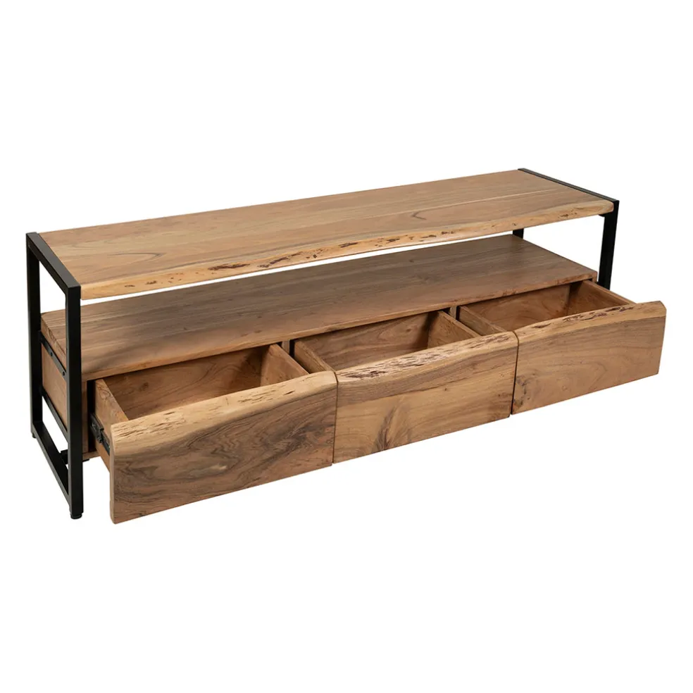 Fabriqué en acacia de haute qualité et doté de trois portes spacieuses, ce meuble offre amplement d’espace de rangement pour vos appareils multimédias, vos DVD et autres accessoires.