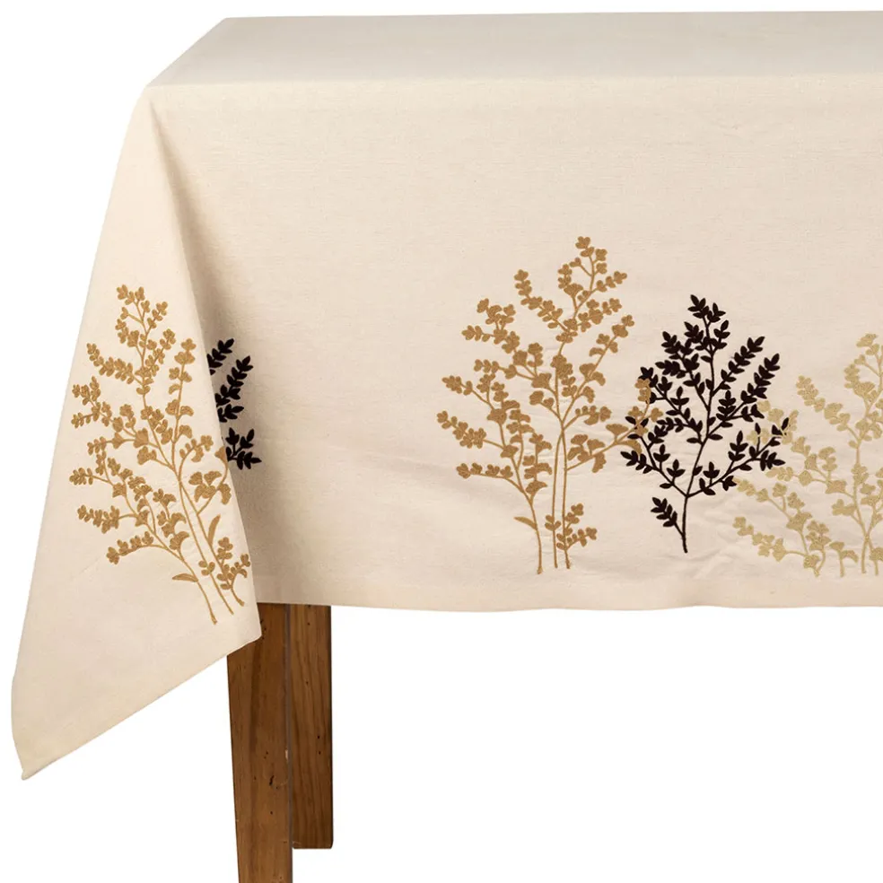 Sublimez votre table avec la nappe en coton écru de 160x160cm, agrémentée d’une délicate broderie feuillage s’étirant sur toute sa longueur.