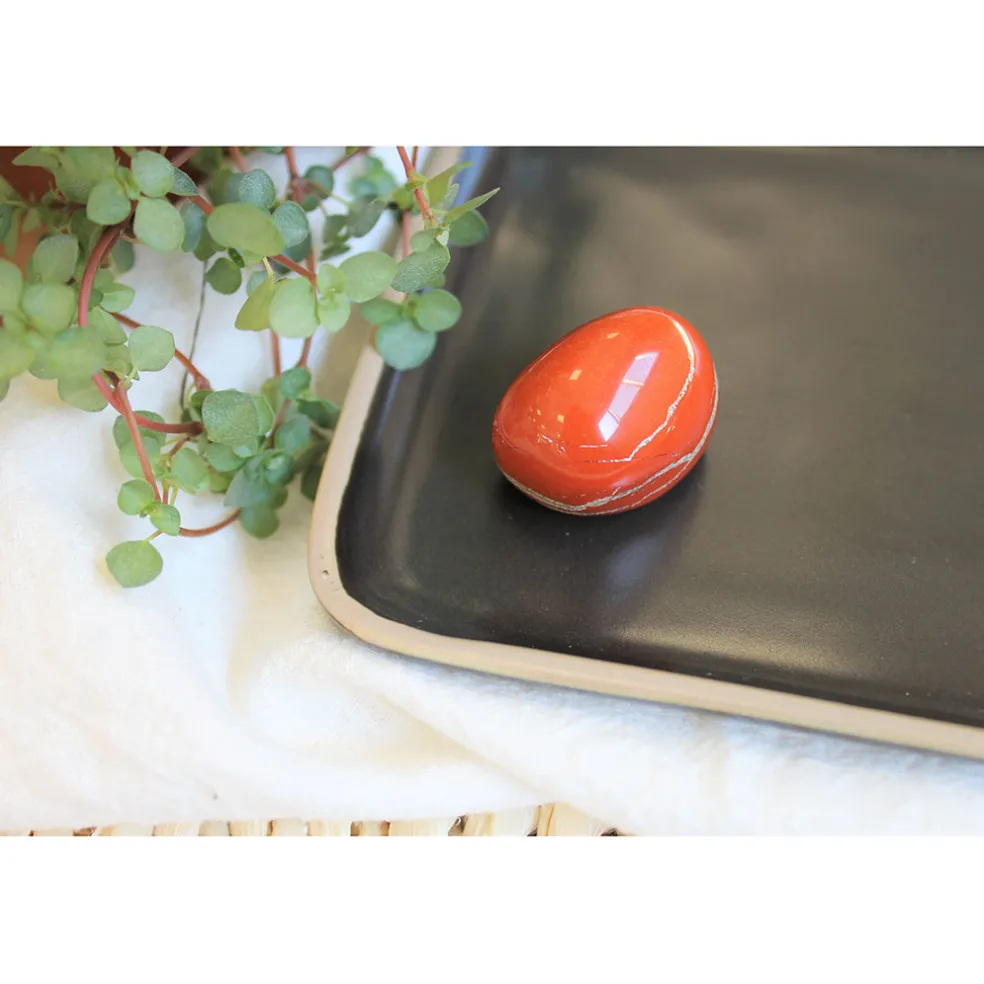 Pierre roulée naturelle de jaspe rouge de taille L à garder toujours près de soi pour profiter de ses bienfaits au quotidien. Le jaspe rouge donne la force et le courage de s’affirmer, d’affronter les difficultés et de rester serein face à l’avenir.Pierre roulée en pierre naturelle de jaspe rouge.