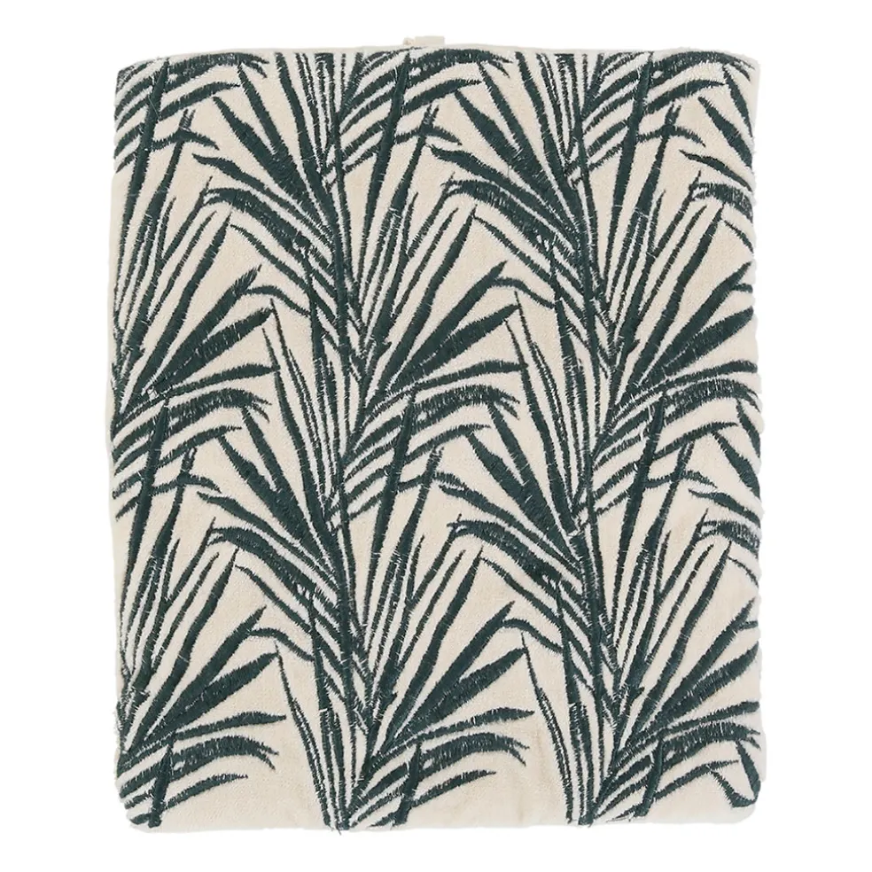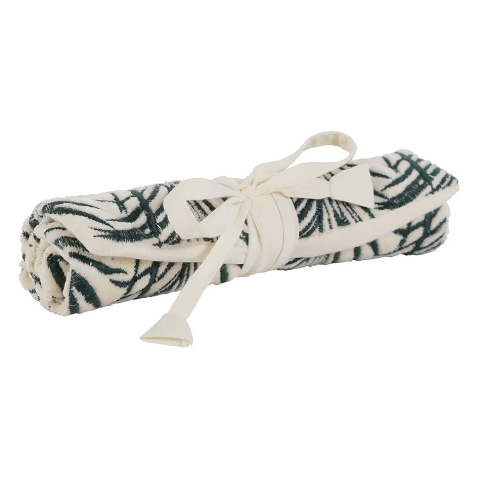 Venez découvrir notre Pochette bijoux voyage tropic’art creme touche emeraude 20x24cm en velours coton et coton de la marque SEMA Design à découvrir sur Fabrique de Styles.CRÉATION UNIQUE