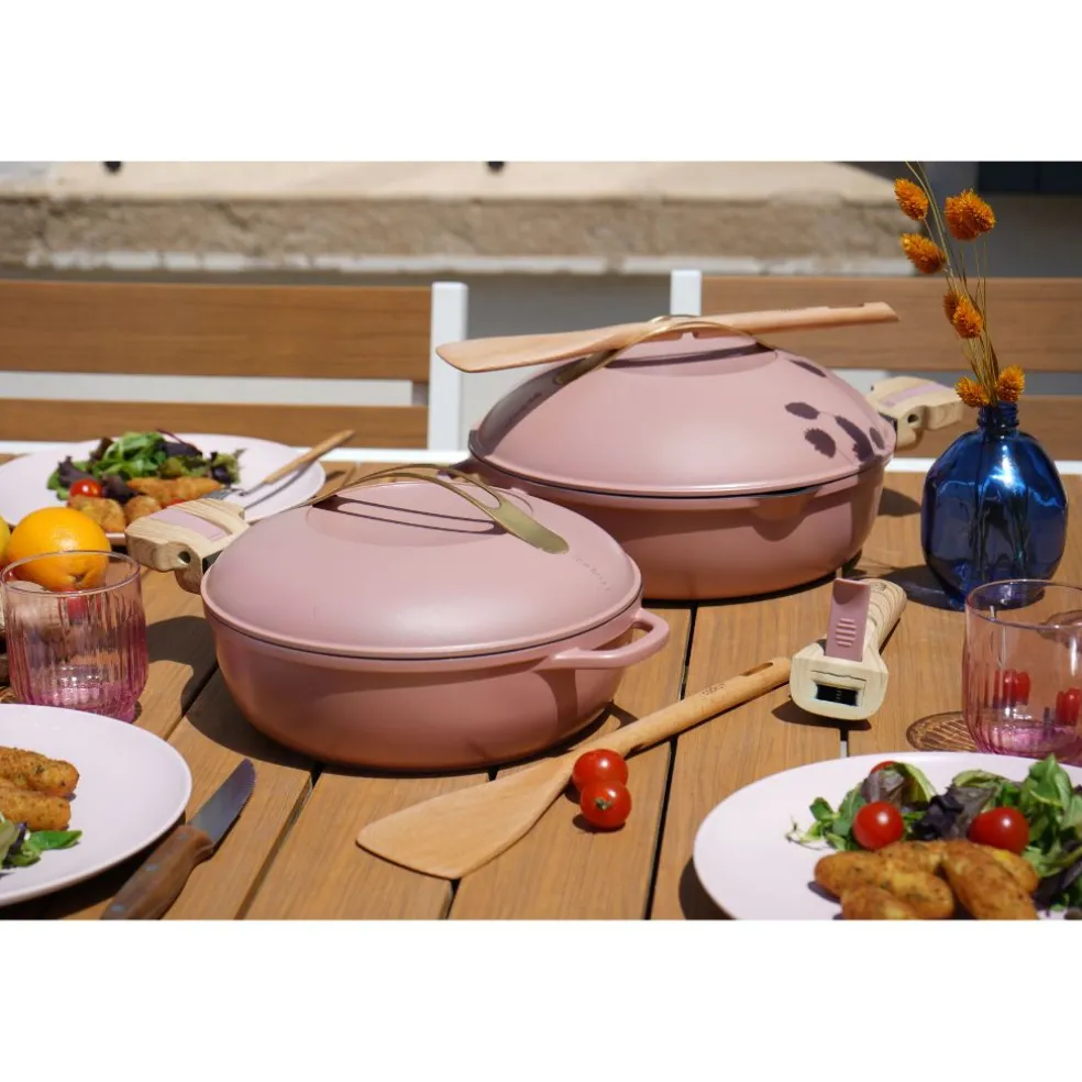 Elle peut être utilisée comme poêle, sauteuse, casserole, cocotte, cuiseur vapeur, friteuse, plat au four et moule à gâteaux.
