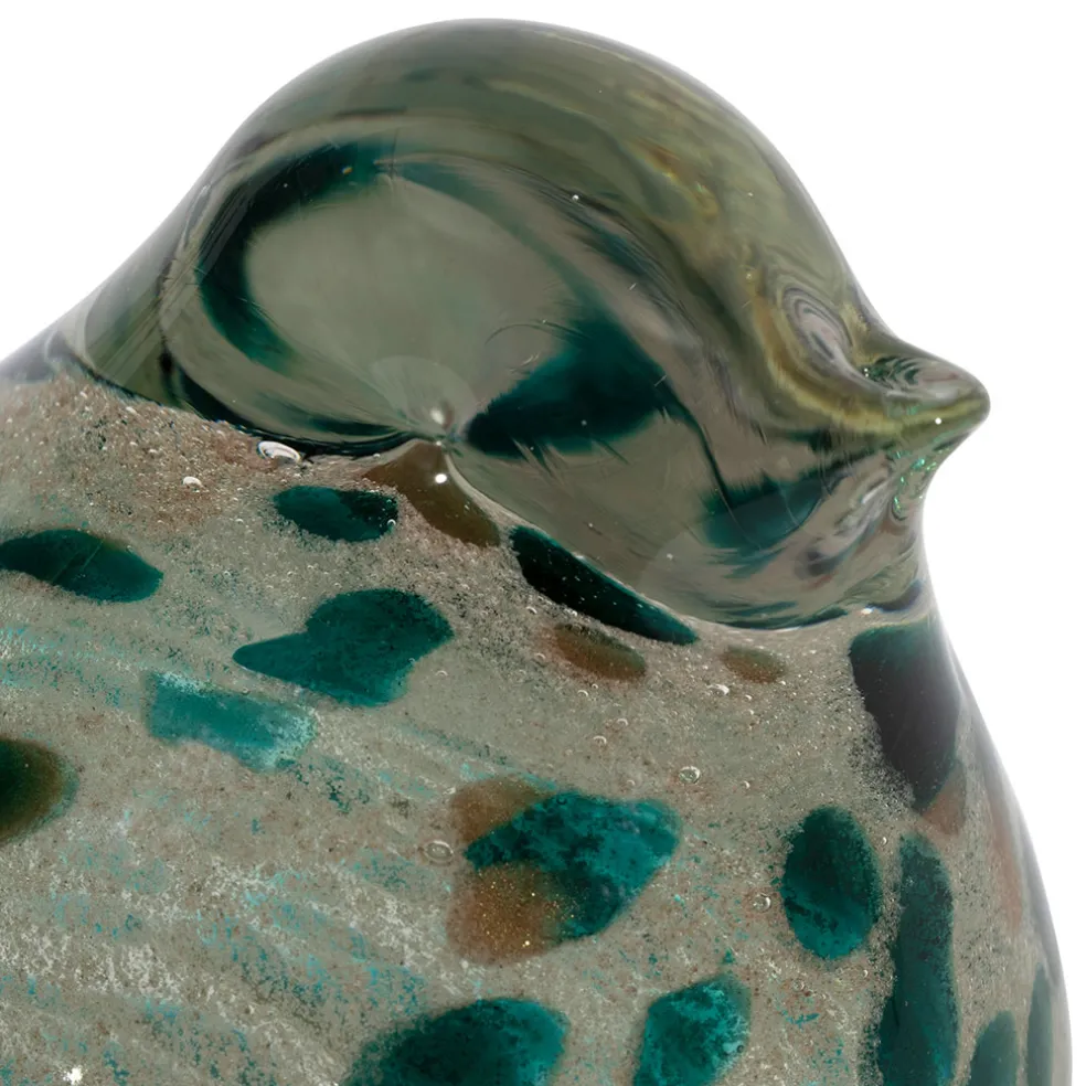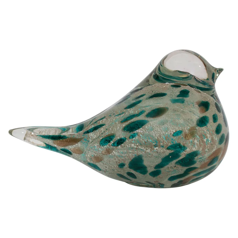Presse papier en verre émeraude et doré, décoré avec élégance par un motif de serin. Parfait pour ajouter une touche de sophistication à votre espace de travail ou comme objet de décoration.Verre.
