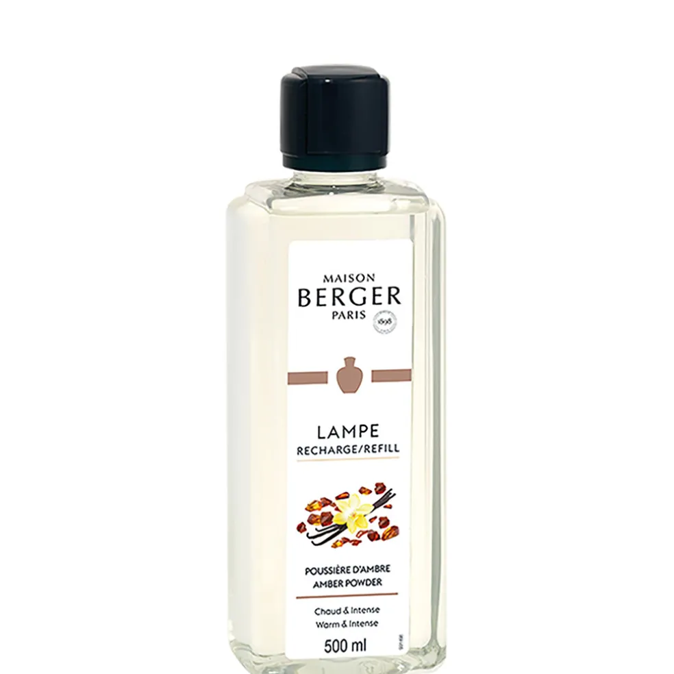Offrez-vous le luxe d’une atmosphère parfumée et élégante avec la Recharge parfum pour lampe 500ml poussière d’ambre de Maison Berger.