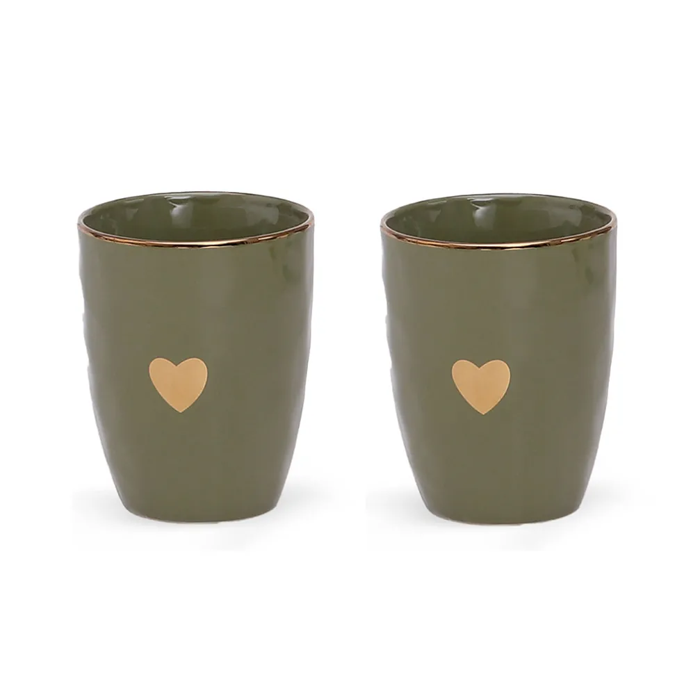 Ensemble de 2 gobelets en faïence fine, au design irrégulier et orné d’un cœur doré. Idéal pour un moment de partage à deux.Faïence