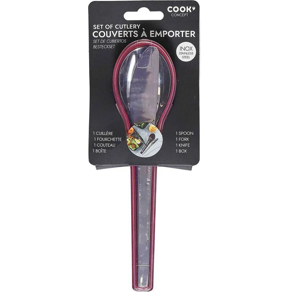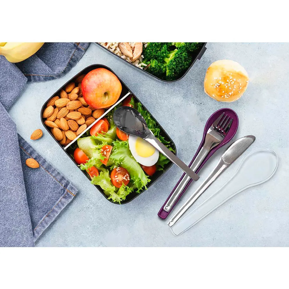 Cette boite de transport à couverts vous procure, au même endroit : une cuillère. une fourchette et un couteau dans une boîte de transport. Vous allez l’adorer !Acier Inoxydable, PP