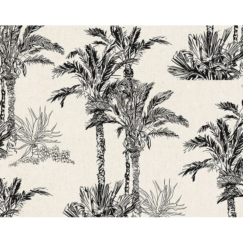 Les motifs de palmiers noirs ajoutent une touche exotique et moderne à votre décoration, s’intégrant naturellement avec divers styles déco, du plus sobre au plus vibrant.