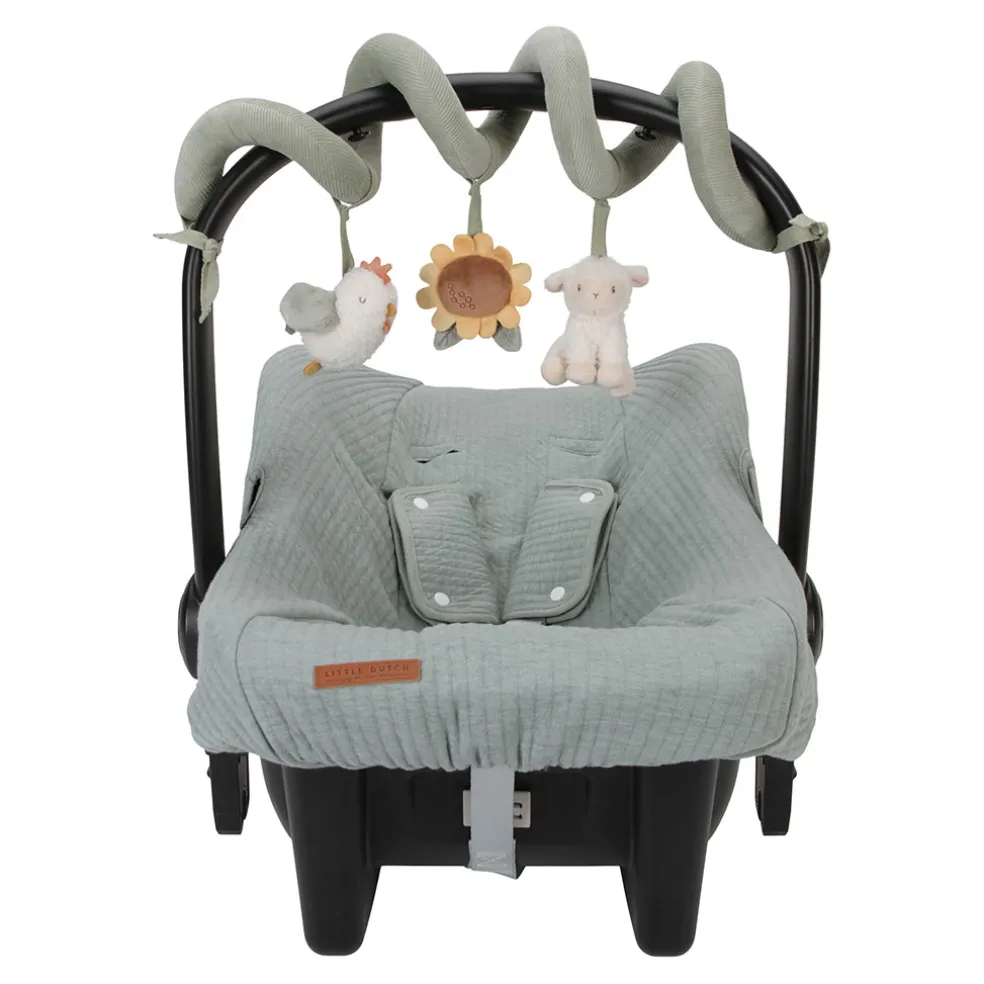 Attachez facilement ce jouet pratique à tout, du berceau au parc à jeux ou au siège auto.