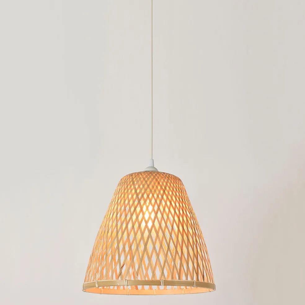 Suspension en bambou naturel conique de 30cm de longueur, idéale pour apporter une touche naturelle et élégante à votre intérieur.Rotin + fer
