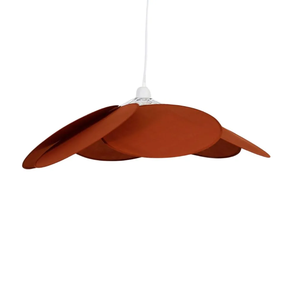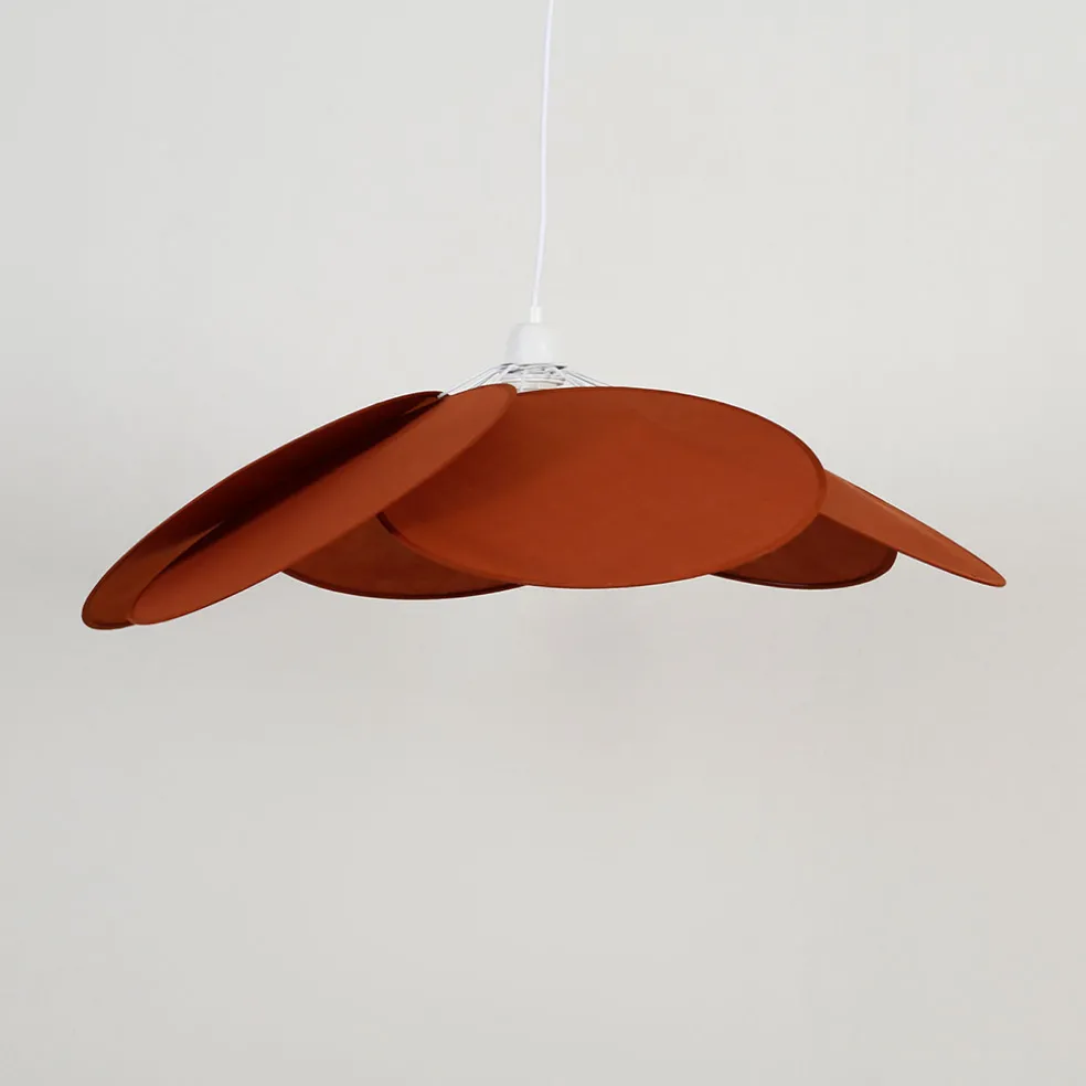 Cette suspension evoque une fleur qui ouvre ses pétales et revèle une couleur rouge rouille, idéale pour les espaces modernes.