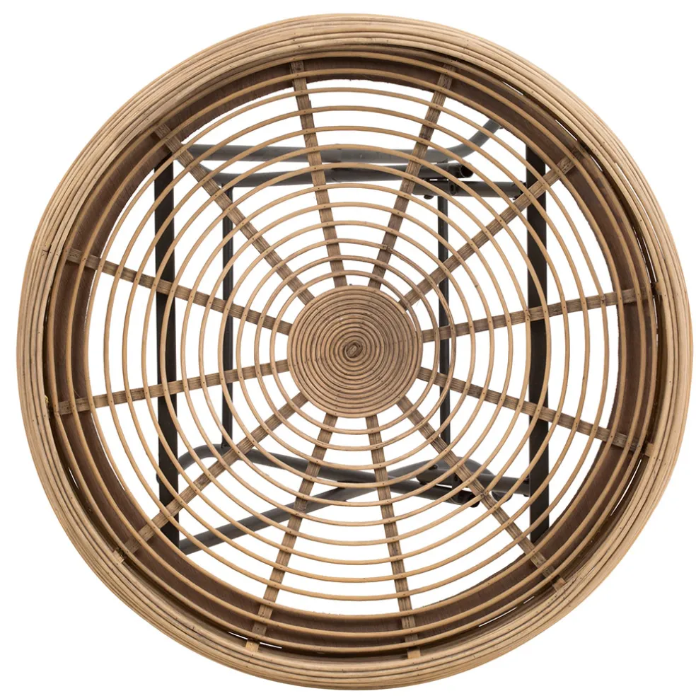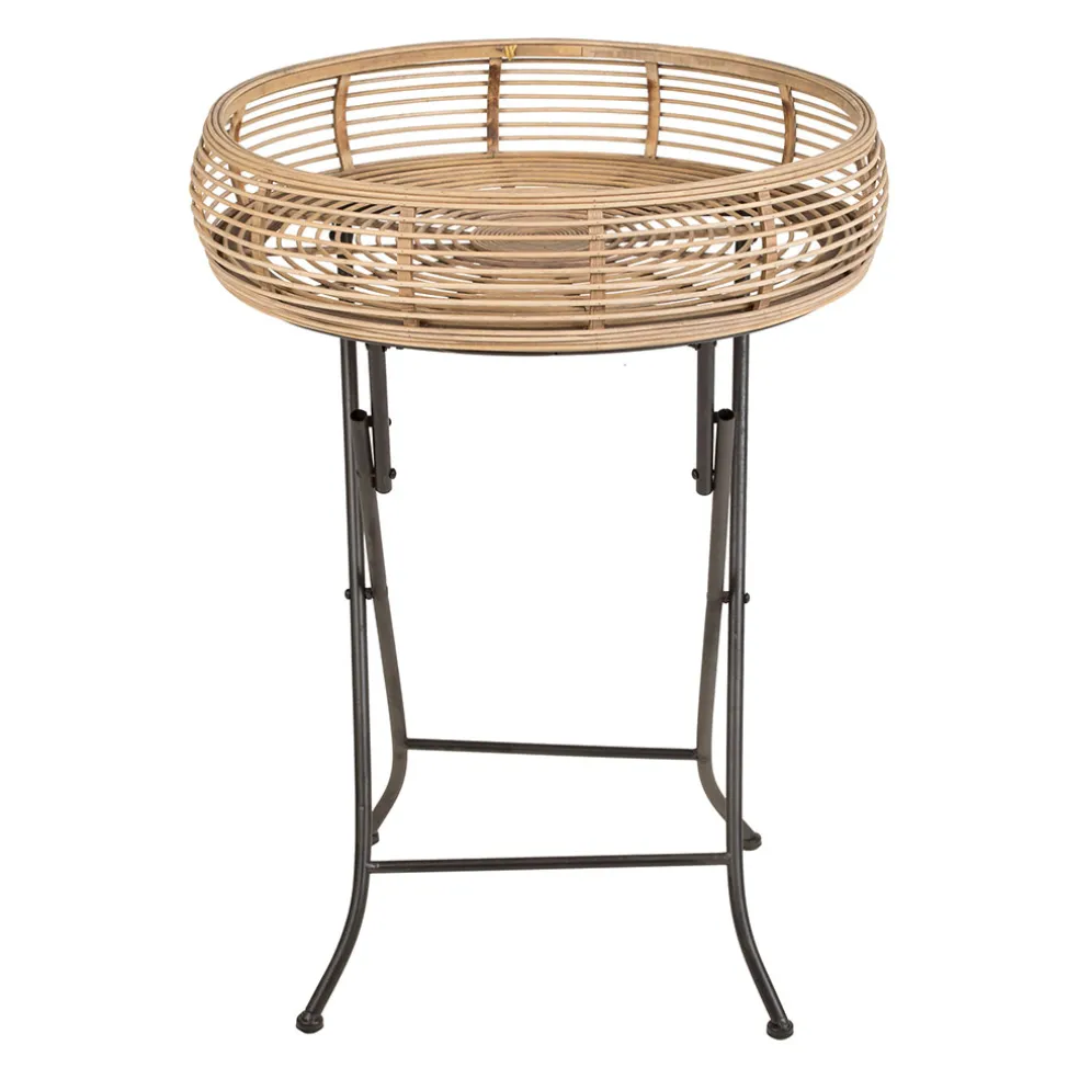 Cette table d’appoint en bambou naturel joue la carte de la légèreté avec son plateau ajouré aux lignes arrondies et sa structure fine en métal noir.