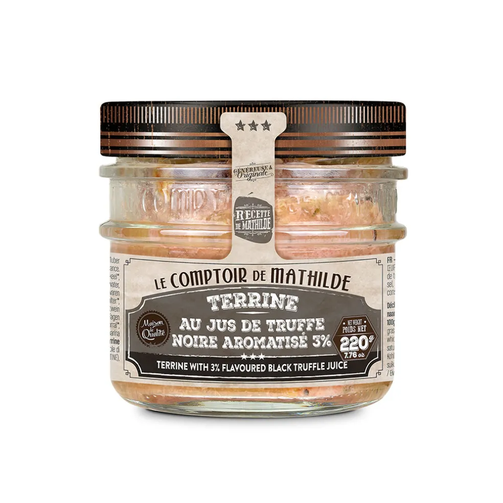 Découvrez notre délicieuse Terrine au jus de truffe noire 220g, une véritable pépite culinaire à déguster sans modération !