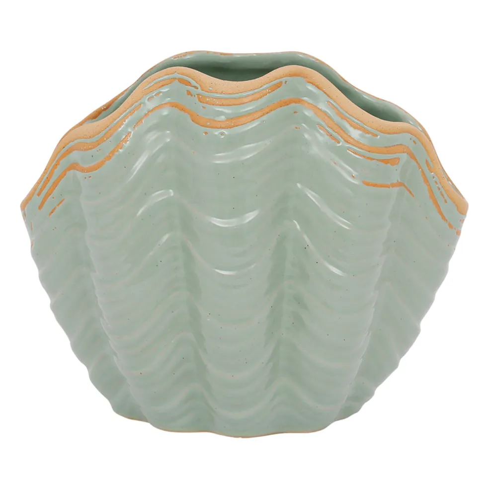 Venez découvrir notre Vase coquillage vert d’eau 18.5×12.5xh15cm gres de la marque Côté Table à découvrir sur Fabrique de Styles.Grès / Stoneware