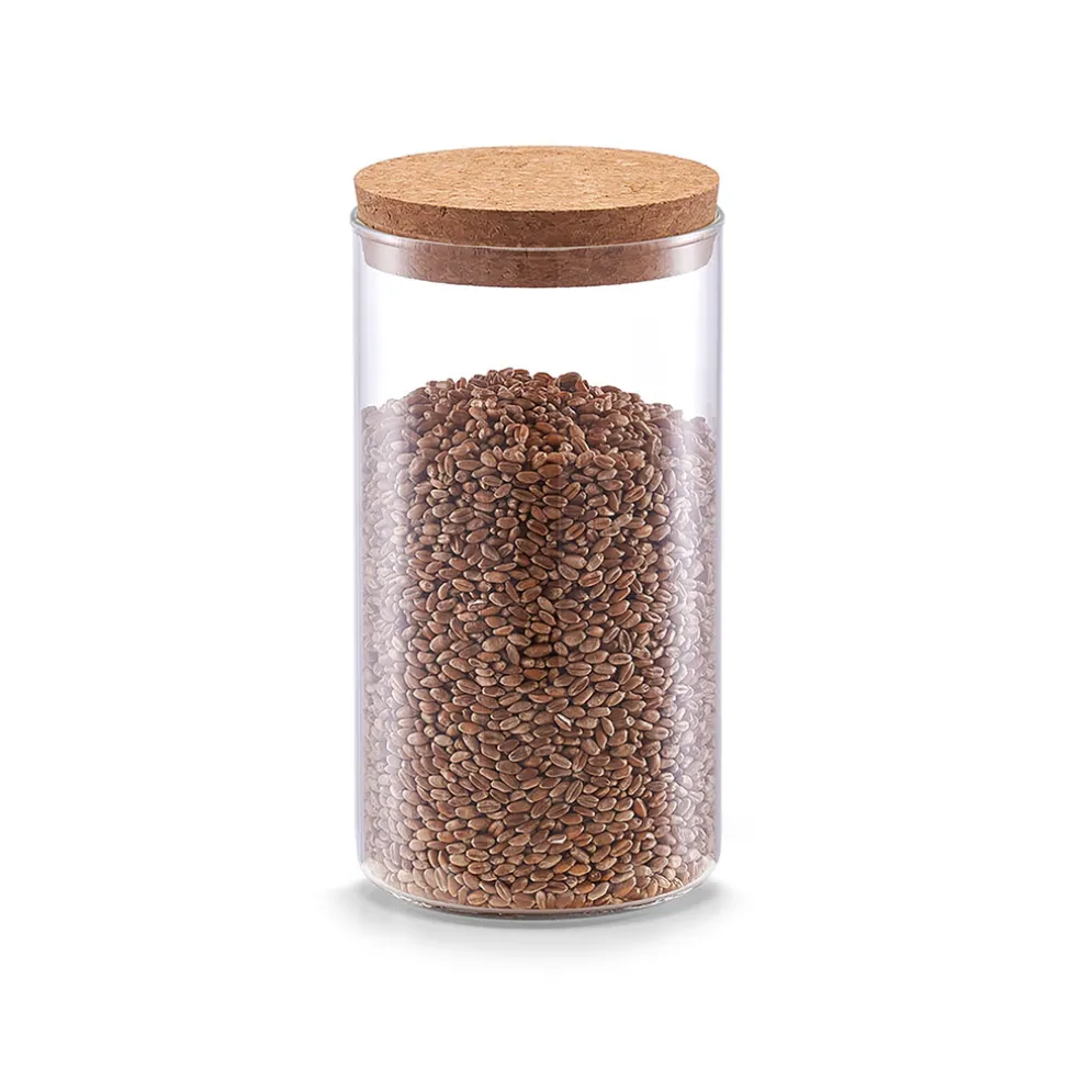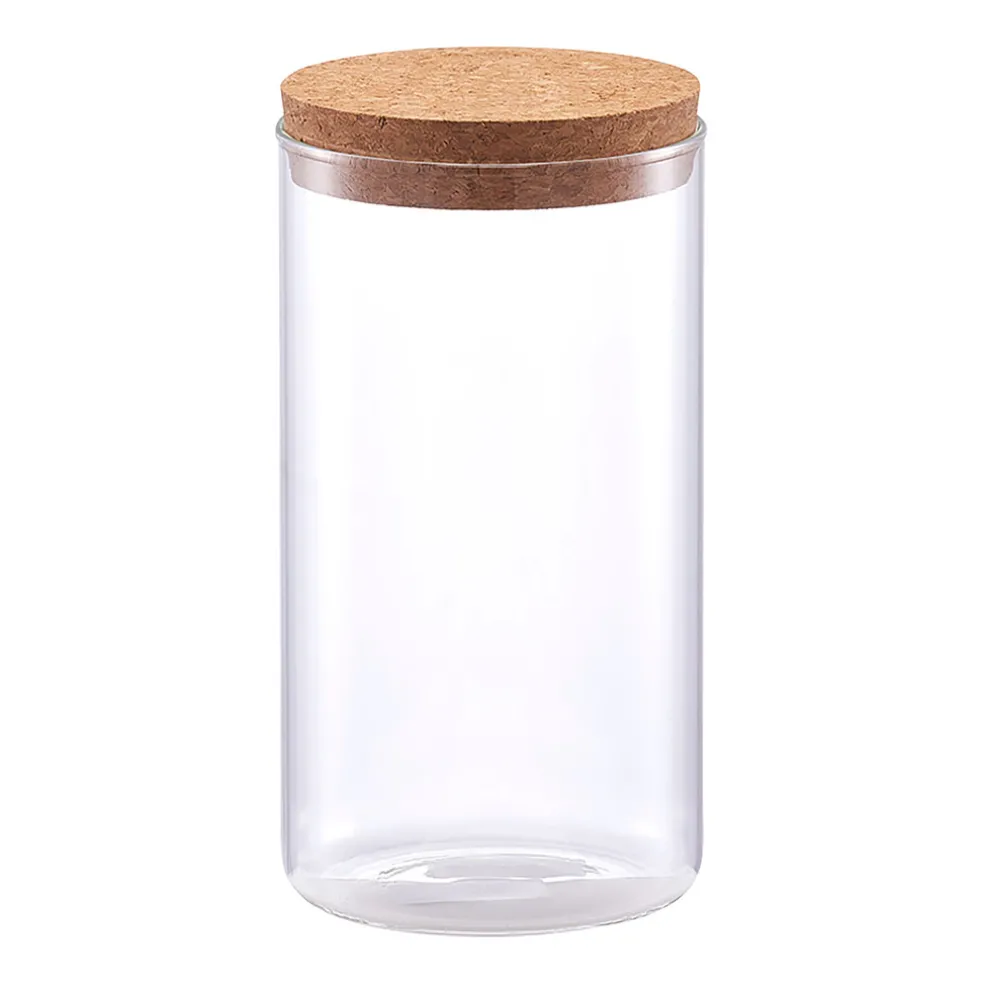 Découvrez notre bocal en verre de 1.1L avec un couvercle en liège, parfait pour conserver vos aliments frais tout en ajoutant une touche d’élégance à votre cuisine.Verre et manguier.