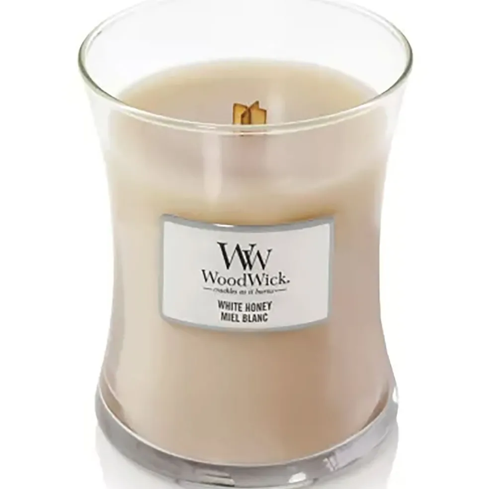 N’attendez plus et laissez-vous séduire par notre bougie jarre miel blanc moyen Woodwick.
