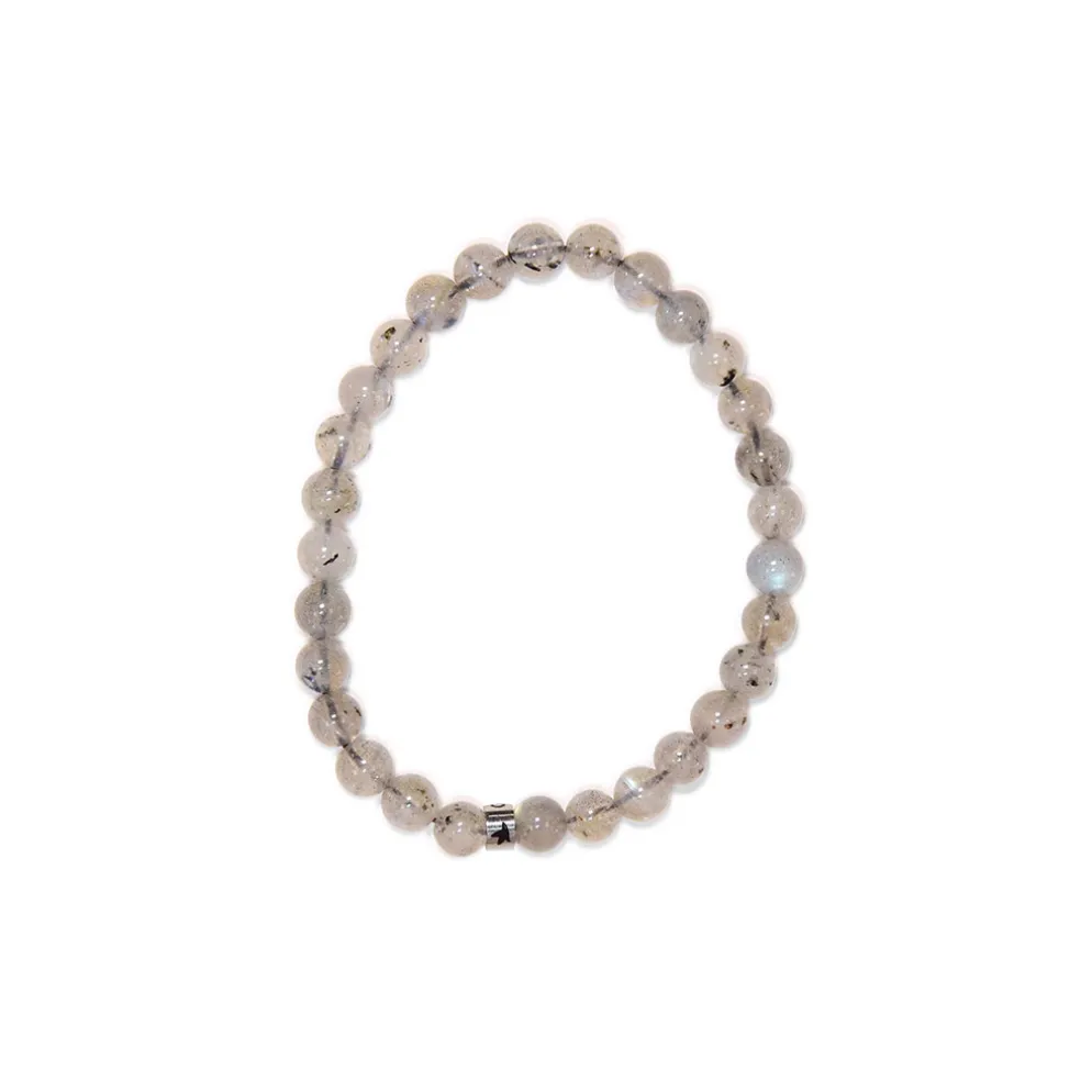 Bracelet élastique composé de perles en pierre naturelle de labradorite.