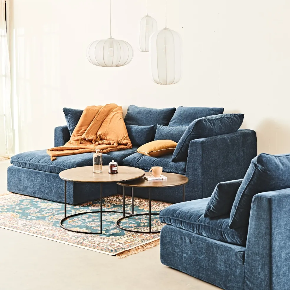 Design élégant : Le canapé Auguste présente un design moderne et épuré avec des lignes équilibrées et un revêtement en bleu-grisé qui s’adapte facilement à de nombreuses décorations intérieures.