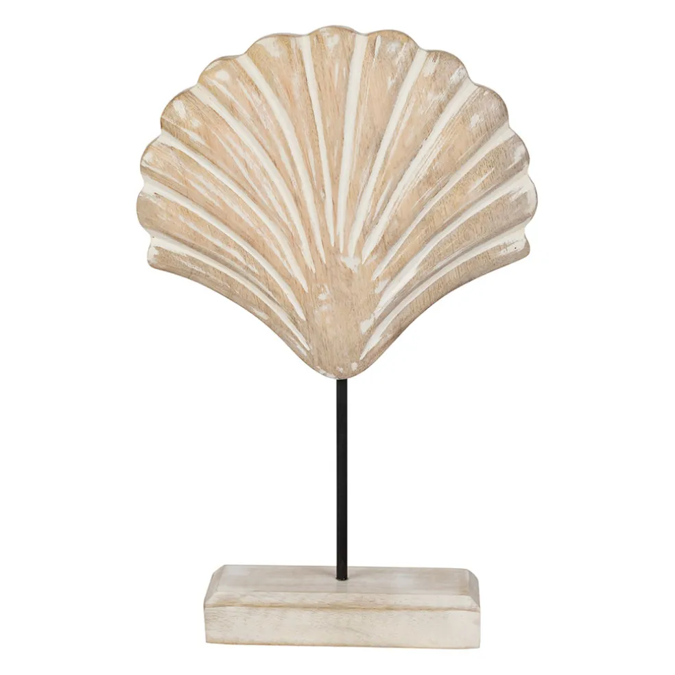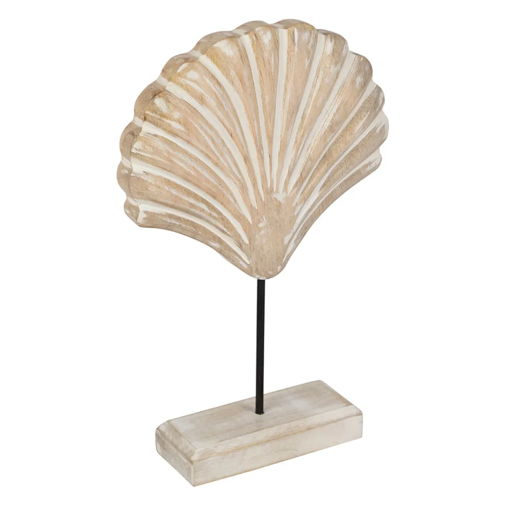 Ajoutez une touche de charme à votre intérieur avec cette magnifique décoration Saint-Jacques sur pied en manguier et fer blanchi – Amarres.