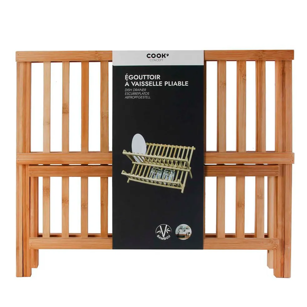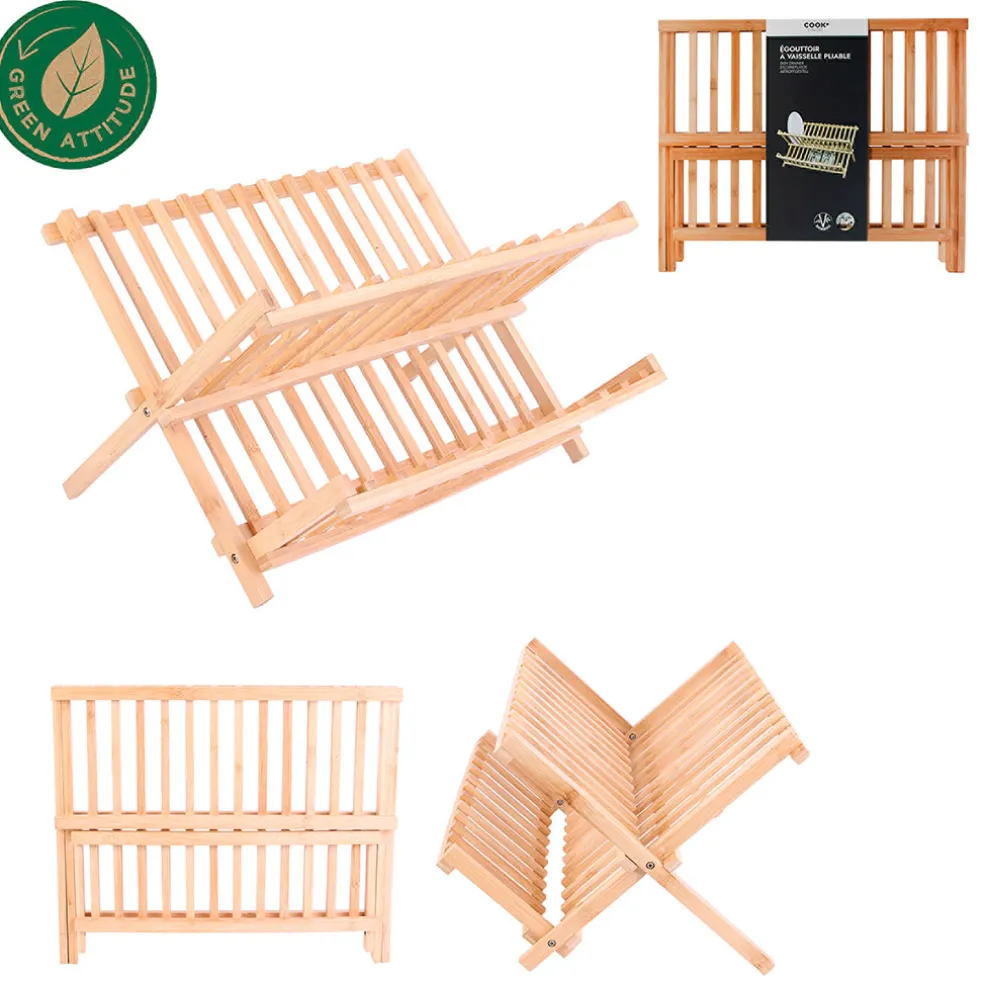 Ce porte-vaisselle est fabriqué en bois de bambou.