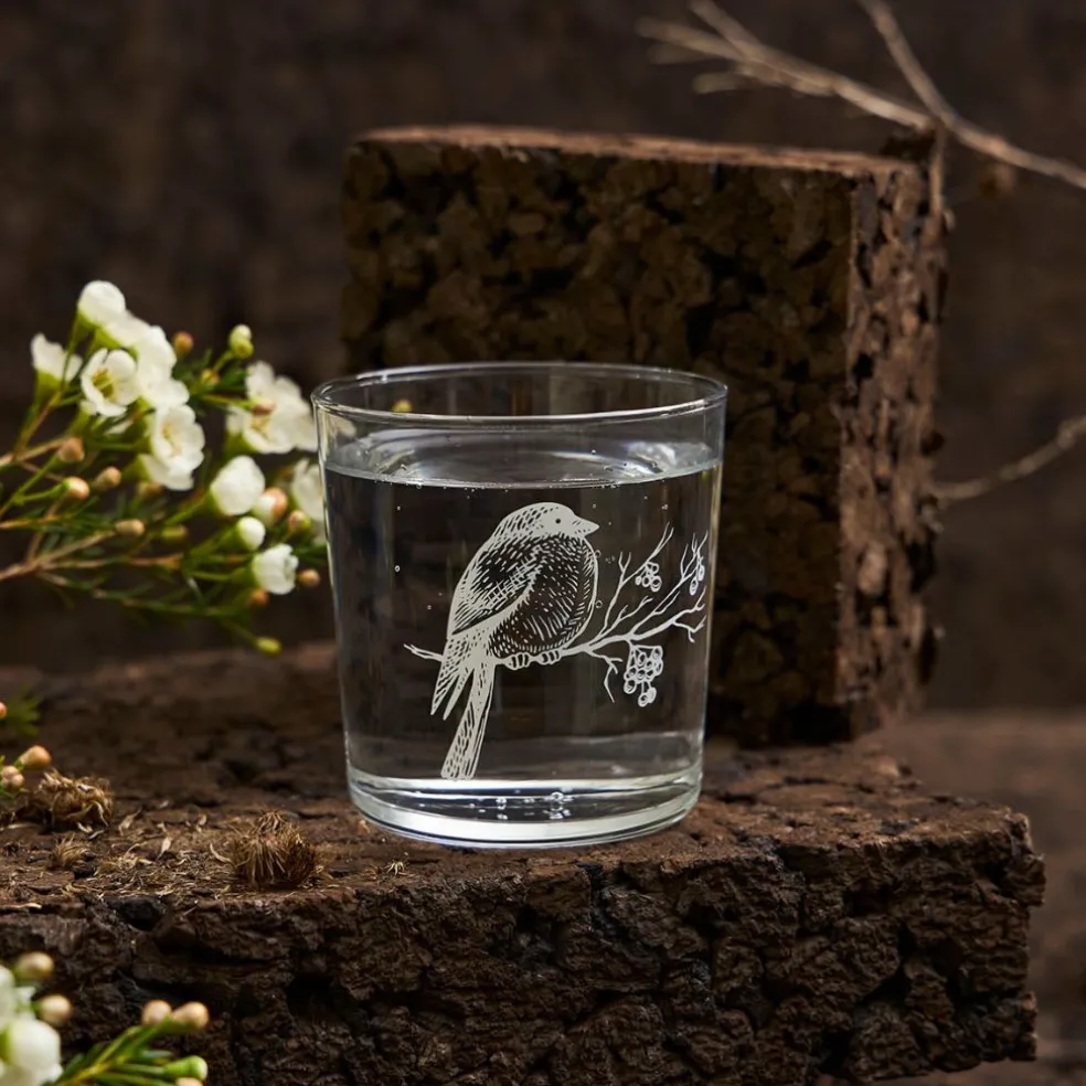 Apportez une touche nature et élégante à votre table avec le gobelet en verre Bodega, orné d’un motif raffiné d’oiseau blanc.