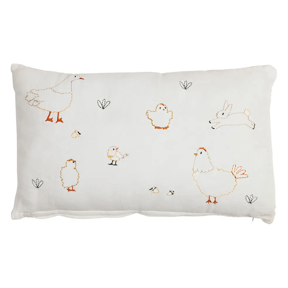Décorez votre maison avec une touche de charme rustique en ajoutant cette housse de coussin en gaze de coton écru et multicolore 50x30cm de la collection « A la ferme ».