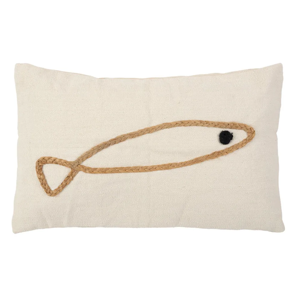 Découvrez cette housse de coussin en coton écru et jute naturel, mesurant 50x30cm, de la collection Eté A La Mer.