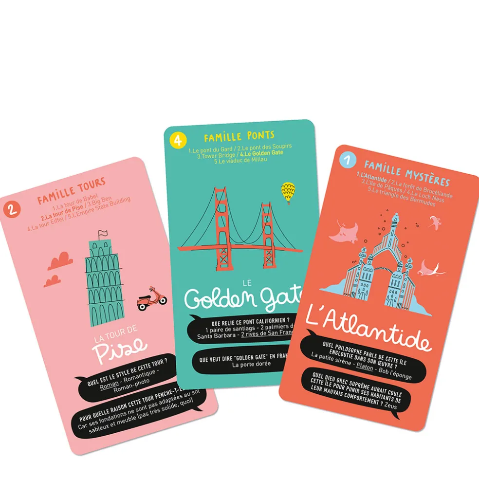 7 familles de 5 cartes, 70 questions à se poser à tour de rôle et à dégainer en voiture,