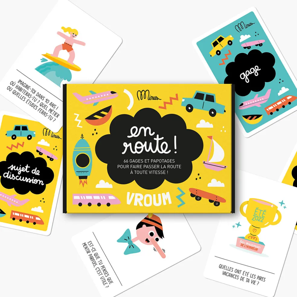 Le jeu à dégainer en voiture, en train, en avion…. 33 cartes « sujet de discussion » pour occuper tous les passagers. 33 cartes « gage » ludiques qui font rigoler toute la famille.